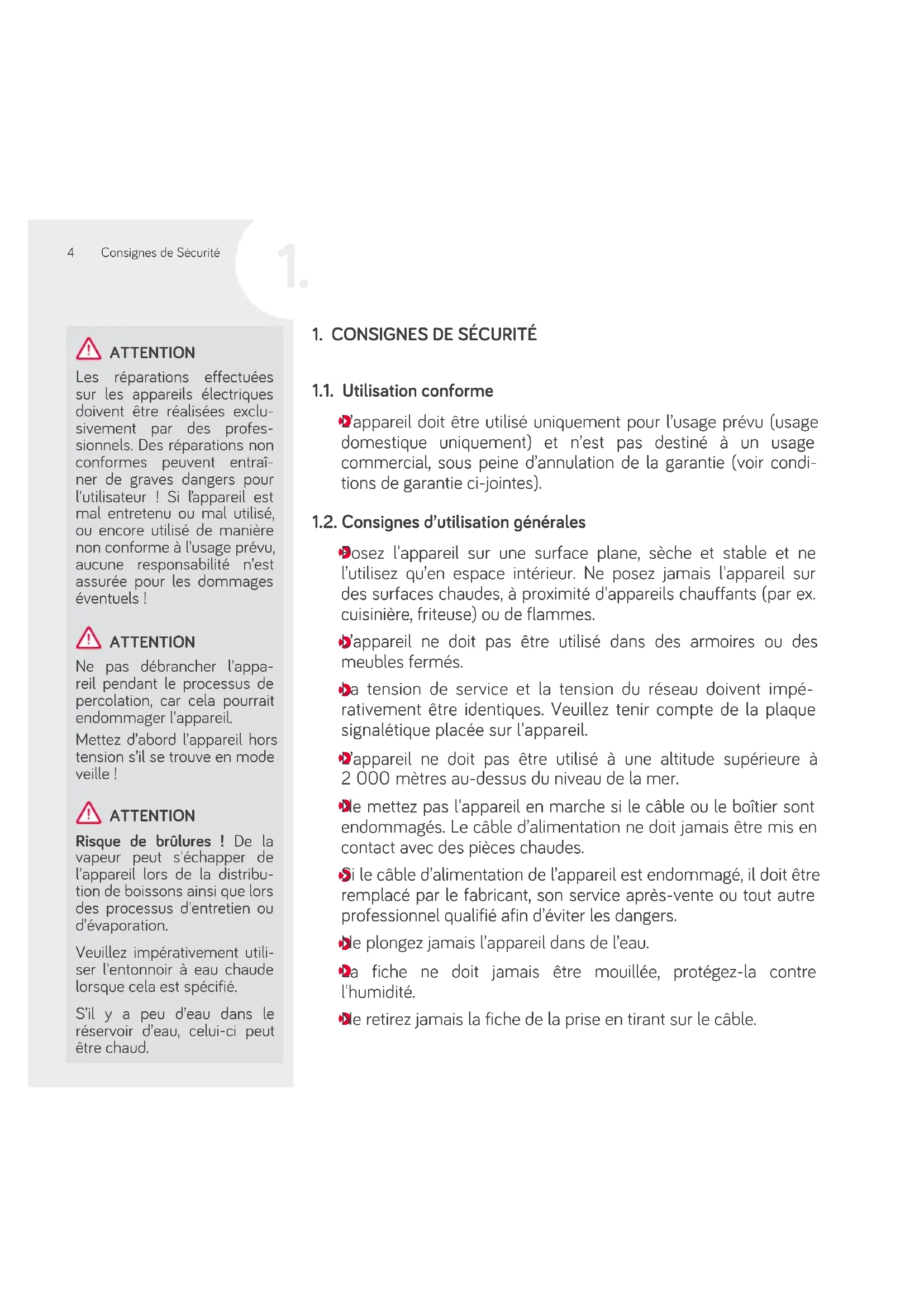 1. CONSIGNES DE SÉCURITÉ
