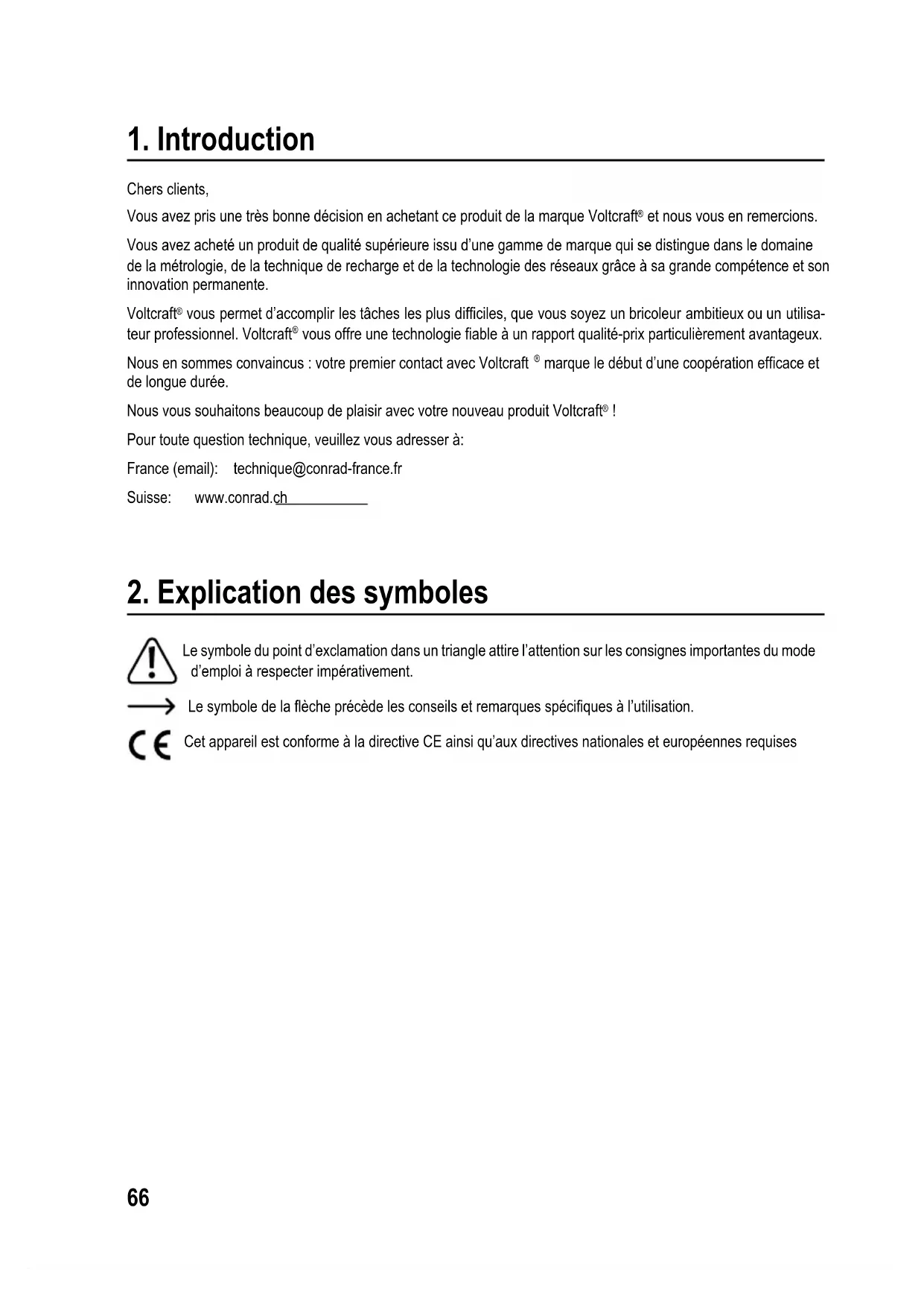 et nous vous en remercions. Vousavezachetéunproduitdequalitésupérieureissud’unegammedemarquequisedistinguedansledomaine delamétrologie,delatechniquederechargeetdelatechnologiedesréseauxgrâceàsagrandecompétenceetson innovation permanente. Voltcraft
