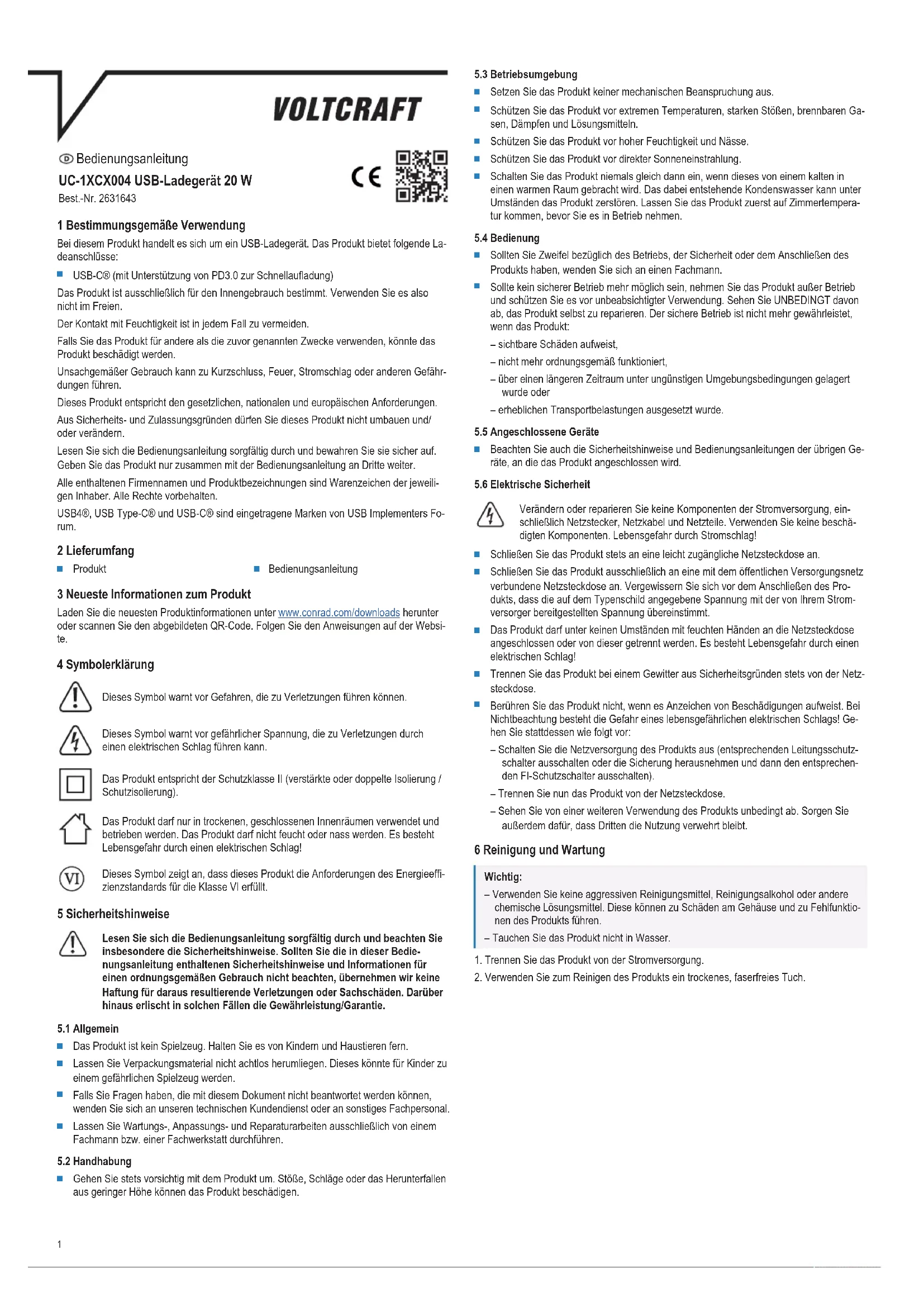 Retrouvez gratuitement la notice de l'appareil UC-1XCX004 VOLTCRAFT au format PDF.
