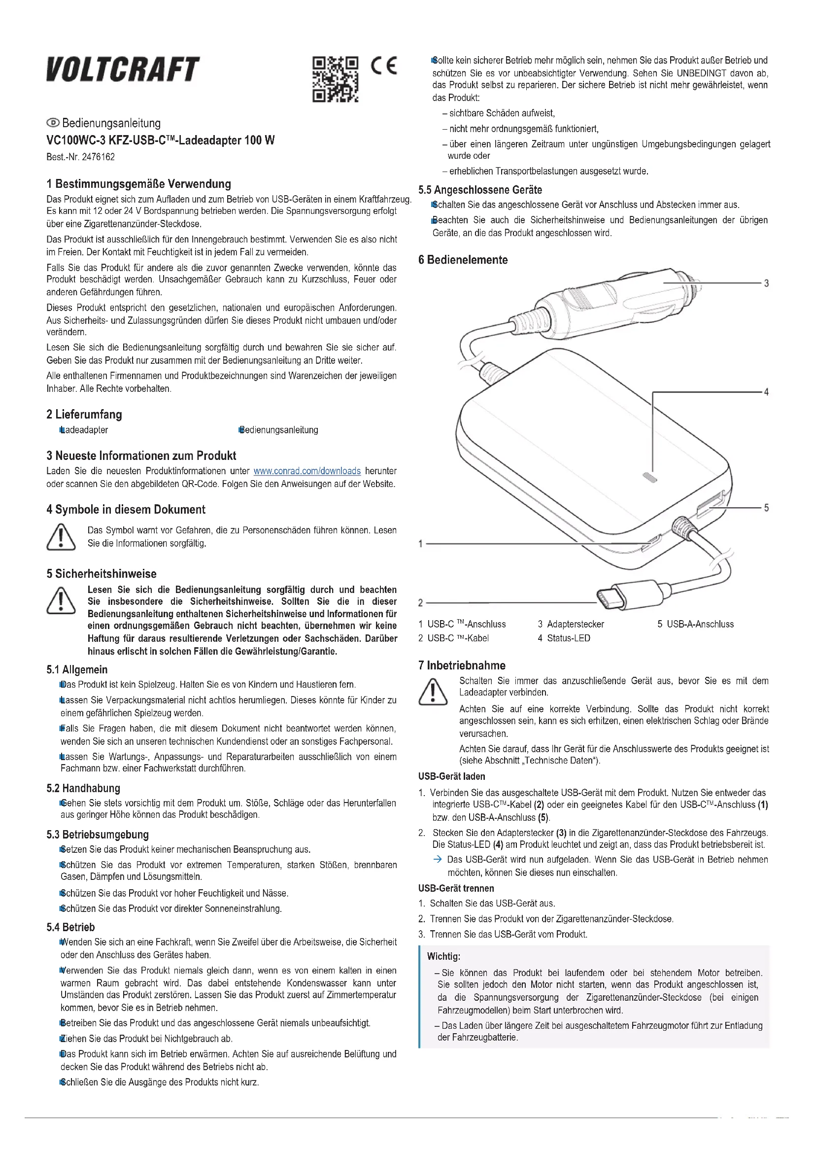 VC100WC-3 - Chargeur téléphone portable VOLTCRAFT - Notice d'utilisation et mode d'emploi gratuit