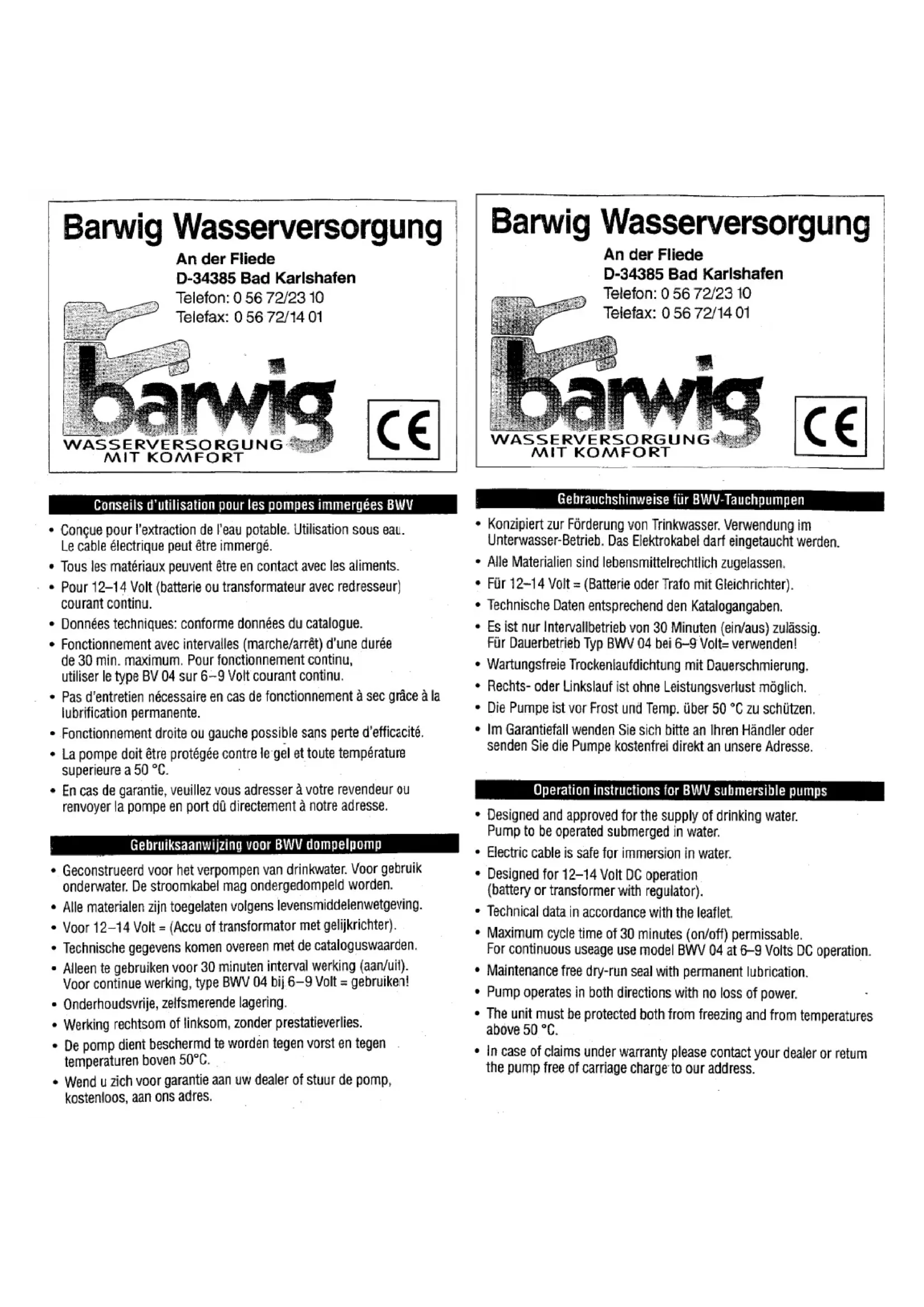 Typ 04 - Pompe Barwig - Notice d'utilisation et mode d'emploi gratuit