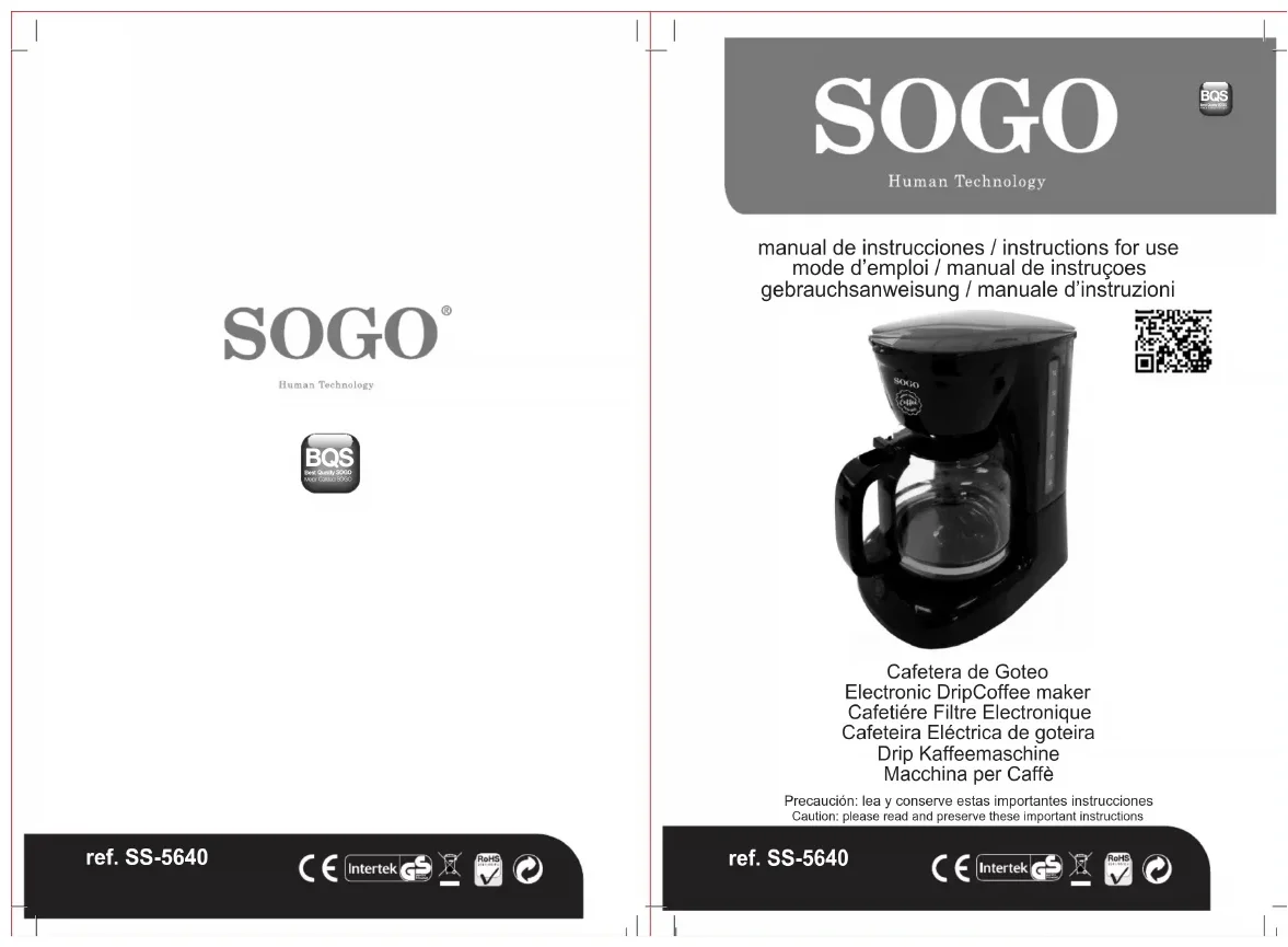SS-5640 - Machine à café Sogo - Notice d'utilisation et mode d'emploi gratuit