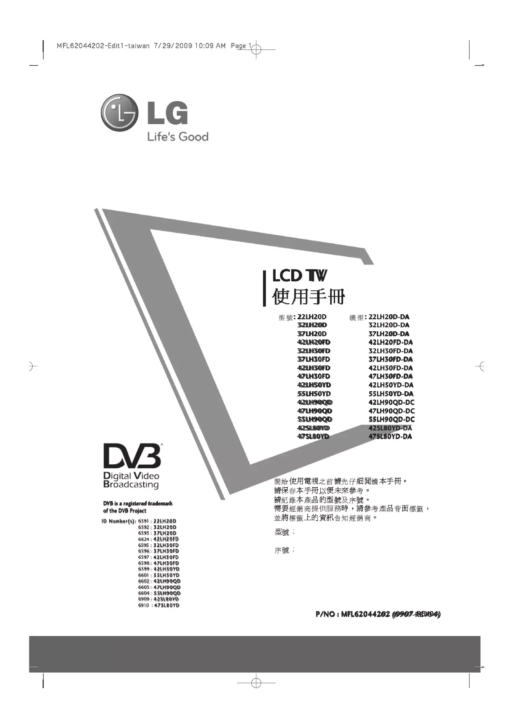Retrouvez gratuitement la notice de l'appareil 42LH90QD LG au format PDF.