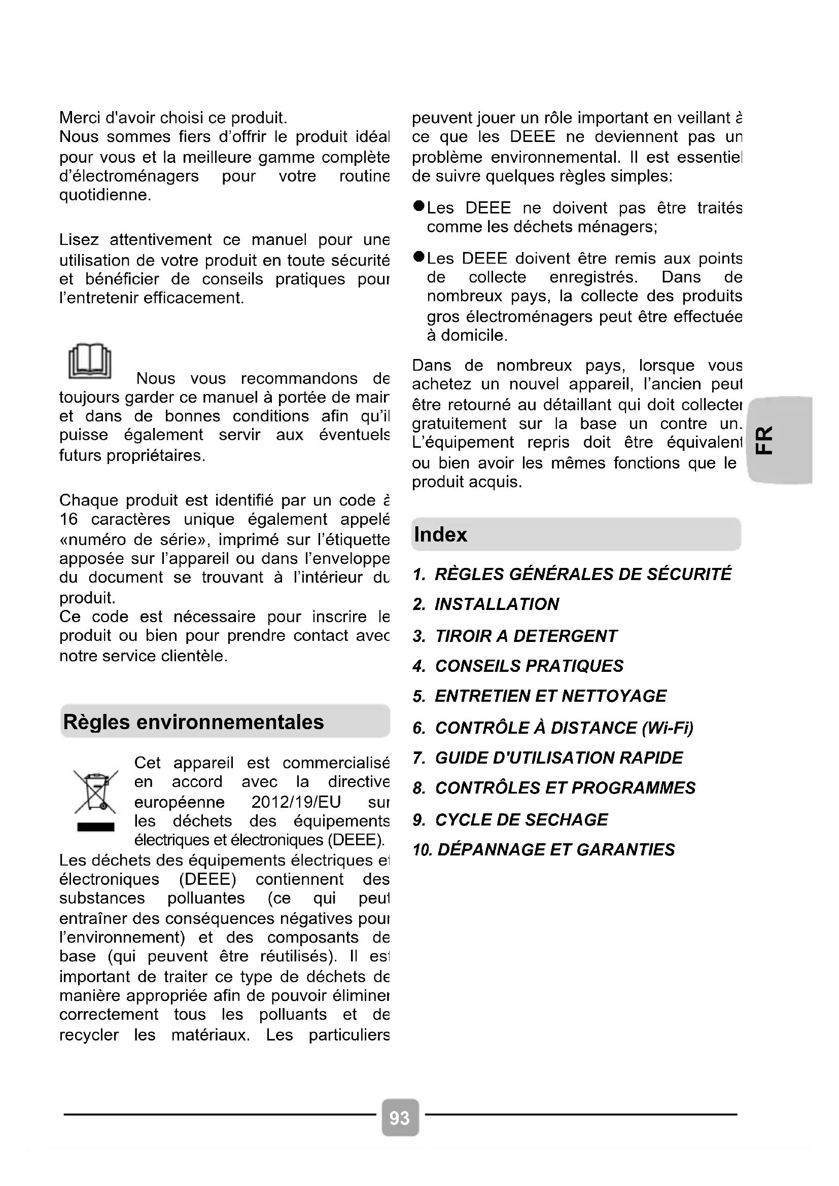 Les DEEE doivent être remis aux points de collecte enregistrés. Dans de nombreux pays, la collecte des produits gros électroménagers peut être effectuée à domicile.