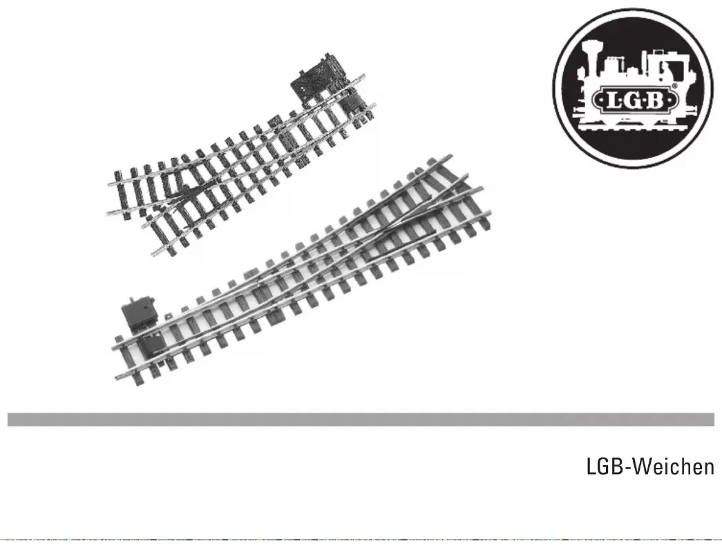 - Les aiguilles électriques LGB sont livrées avec un ou plusieurs moteurs d’aiguille LGB réf. 12010 (photo 2). Le moteur peut-être monté à droite ou à gauche de l’aiguille (b). Il se fixe sur les traverses à l‘aide de deux vis. Remarque : Les aiguilles LGB électriques sont des aiguilles avec dis- positif de verrouillage. Cela signifie qu’un train qui arrive par exemple du côté « déviation » alors que l’aiguille est en position « voie directe » fait basculer celle-ci en position « déviée ». Après le passage du train, les lames d‘aiguilles restent dans leur nouvelle position.9 Pour talonner les aiguilles, les wagons légers devront toutefois éventuellement être lestés. Pour une exploi- tation fiable, nous conseillons donc de positionner les aiguilles correctement, même lorsque le train arrive par « le talon ». Commutateurs EPL Le commutateur complémentaire réf. 12070 est un commutateur à deux pôles que l‘on raccorde au moteur d’aiguille après en avoir retiré la plaque de protection arrière en faisant levier avec un tournevis. Vous obtenez ainsi un relais qui vous permet de commander vos trains de différentes manières. Aiguillage triple réf. 12360 L’aiguillage triple réf. 12360 est fourni avec deux moteurs d’aiguille réf. 12010. La diode fournie doit être insérée entre les deux connexions orange sur le pupitre de com- mande réf. 51755, les lames pouvant sinon se gêner l‘une l‘autre lors du processus du déplacement de l’aiguille. Traversée jonction double La pose de la traversée jonction double réf. 12260 nécessite au moins deux éléments de voie courts réf. 10050, 10090 ou 11040. Les extrémités des traverses de ces éléments de voie présentent des points de rupture permettant de les raccourcir pour les combiner avec la traversée jonction double. Remarque : Un train qui emprunte la traversée jonction double ta- lonne les lames d’aiguilles même si toutes les lames ne sont pas positionnées pour l’itinéraire prévu. Toutefois, certaines lames d’aiguille peuvent rester entre deux positions, entraînant le déraillement du train suivant. Entretien Les aiguilles LGB nécessitent un minimum d’entretien régulier, surtout si elles sont utilisées en plein air: