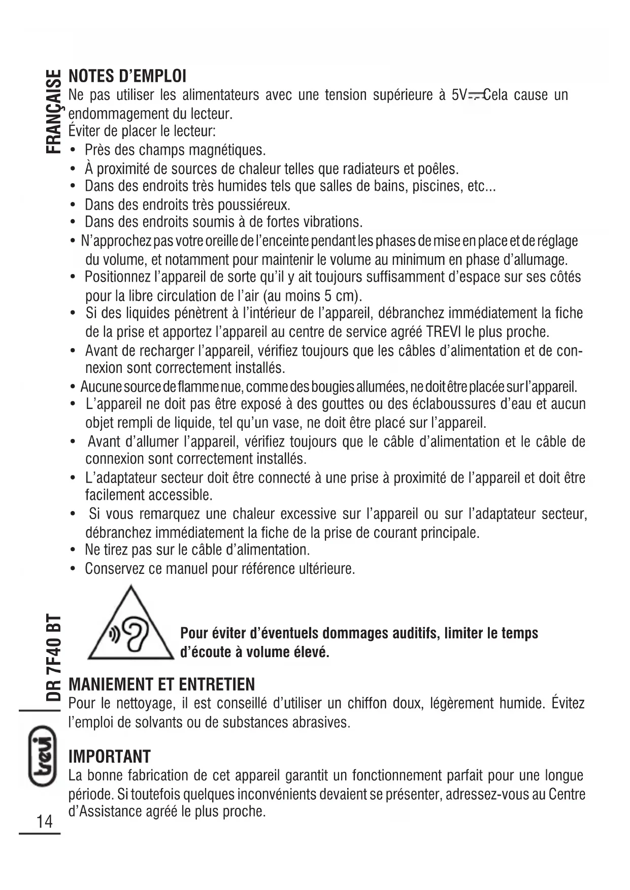 MODE D'EMPLOI DR 7F40 BT Trevi