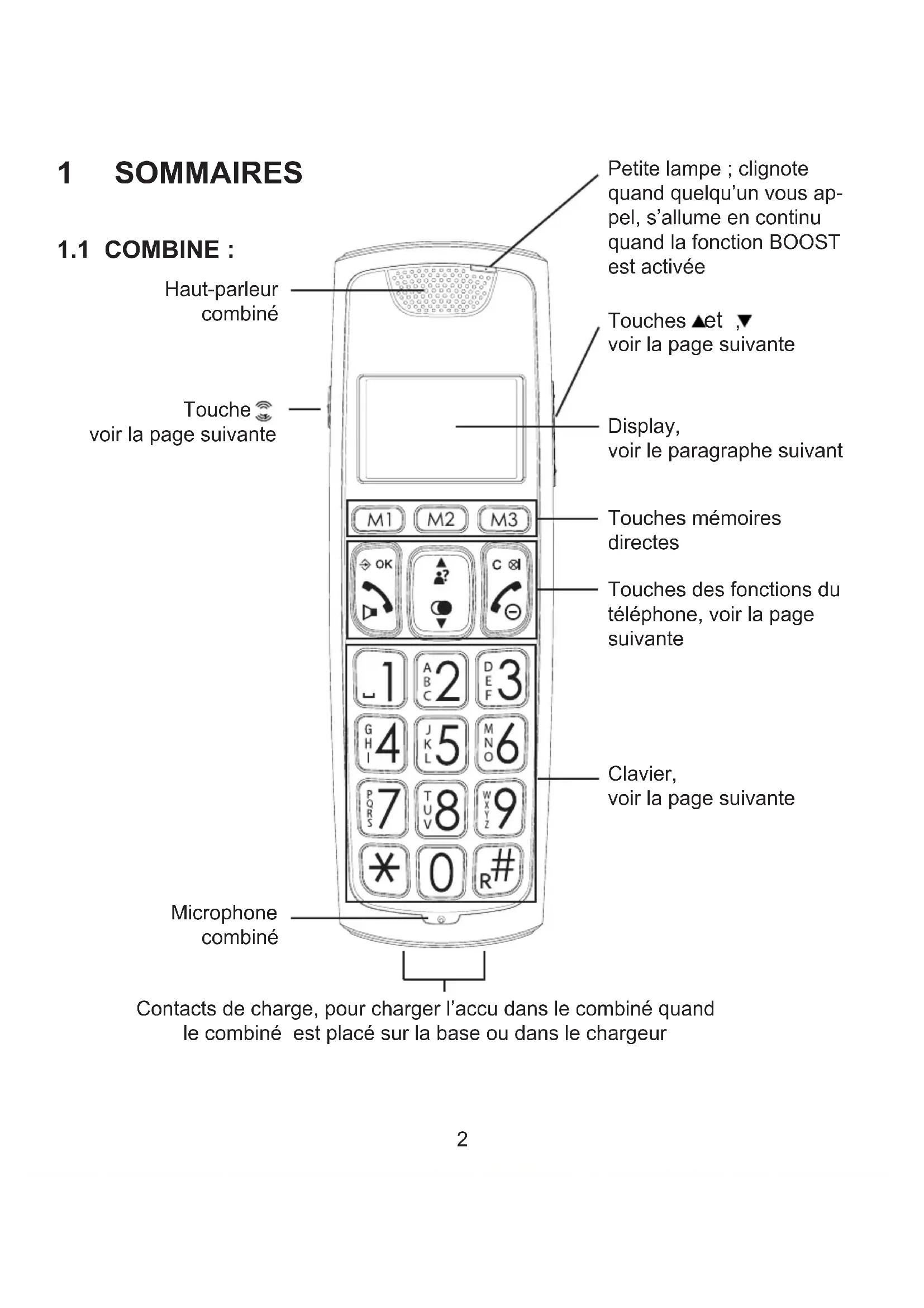 biné et placez le combiné sur la base ou le chargeur