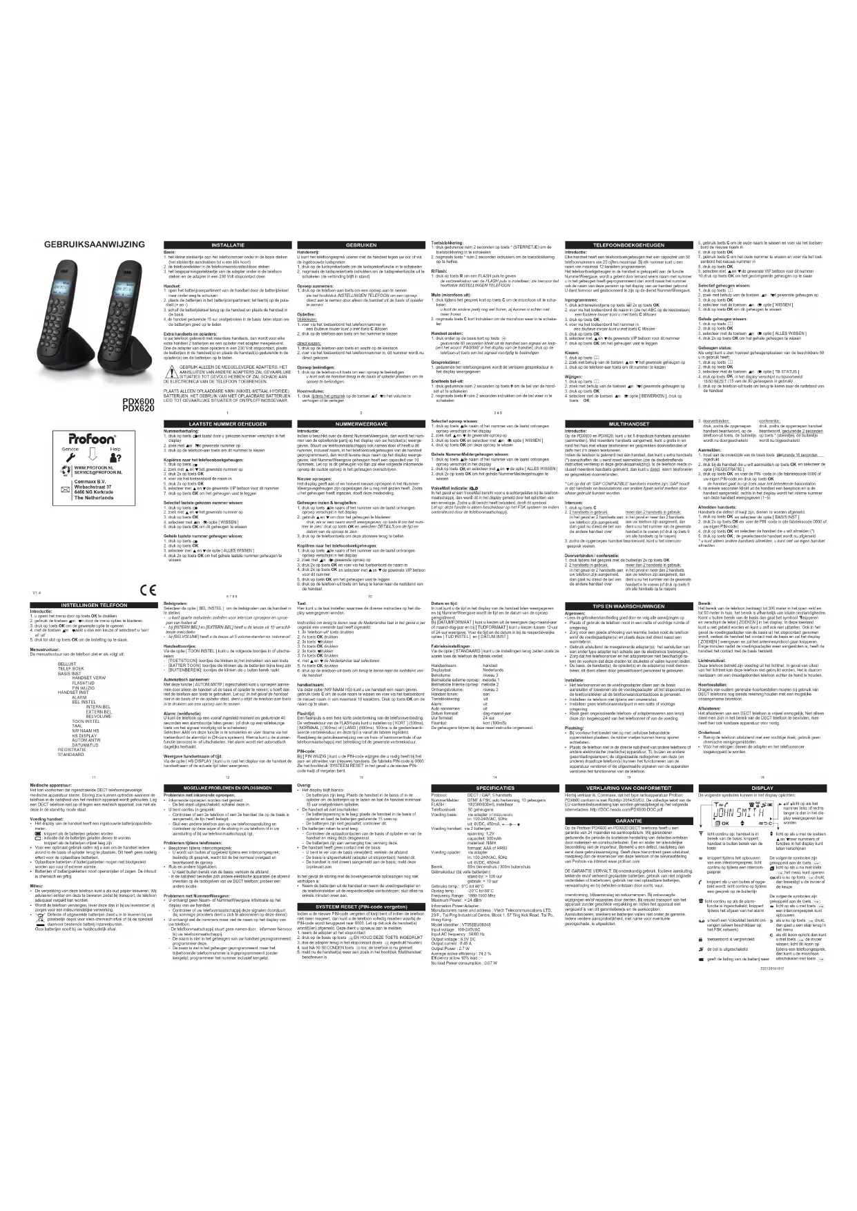 Lesoussigné,Commaxx,déclarequel’équipementradioélectriquedu typeProfoonPDX600estconformeàladirective2014/53/UE.Letexte completdeladéclarationUEdeconformitéestdisponibleàl’adresse internetsuivante:http://DOC.hesdo.com/PDX600-DOC.pdf GARANTIE LeProfoonPDX600etPDX620DECTvousdonneunegarantiede24 MOISaprèsladated’achat.Pendantcettepériode,nousvousassurons uneréparationgratuitedesdéfautscauséspardesdéfautsdeconstruc- tionoudematériaux.Celaaujugementdel’importateur. COMMENTAGIR: Sivousconstatezundéfaut,ilfautd’abordconsulterlemoded’emploi. Sicelanevoussertàrien,ilfautconsultervotrefournisseurouleSer- viceAprèsVentedeProfoonparInternetsurwww.profoon.com LAGARANTIEÉCHOIT: Encasd’uneutilisationincompétente,d’unraccordementfautif,des pilesquifuirentet/oumalplacées,d’uneutilisationdespiècesdéta- chéesoudesaccessoirespasoriginauxetencasdenégligenceoudes défautscausésparhumidité,incendie,inondation,foudreetcatastrop- hesnaturelles. Encasdemodicationsillégaleset/ouréparationspartiers.Encasde transportfautifdel’appareilsansemballageappropriéoudanslecasoù l’appareiln’estpasaccompagnédecebondegarantieetlebond’achat. Deslsderaccordement,deschesetl’accunerelèventpasdela garantie. Touteautreresponsabiliténotammentauxconséquenceséventuelles estexclue. APERCU ECRAN éclaircitconstammentsidans laportéedelabase;clignote enrecherchantunebase éclaircitpendantunappel interphone éclaircitpendantunappel téléphonique éclaircitquandlafonction d’alarme(réveil)estactivée éclaircitquandvousavez reçuunmessageVoiceMail (seulementsystèmeFSK) éclaircitquandleblocage destouchesestactivé éclaircitquandlasonnerie ducombinéestdésactivée éclaircitquandlespilessont pleines( =indicationpiles vides) plusque2combinésutilisés: siplusque2combinésontétébranchés àvotretéléphone,ilfautmaintenant introduirelenuméroducombinédésiré(ou appuyezsurlatouche9pourappelertous lescombinés conférence: appuyez,dèsquelecombinéappelé répond,surlatouche*(étoile)pendant2 secondes,laligneextérieureestjointe plusque2combinésutilisés: siplusque2combinésontétébranchés àvotretéléphone,ilfautmaintenant introduirelenuméroducombinédésiré(ou appuyezsurlatouche9pourappelertous lescombinés PDX600 PDX620 éclaircitsivouspouvezfaire apparaîtreplusdepossibilités oudesmémoiresurl’écran aveclatouches et Les2symbolessuivantssont branchésàlatouche : éclaircitsivouspouvez ouvrirlemenuavecla touche éclaircitsivouspouvez conrmeruneinstruction aveclatouche Les3symbolessuivantssont branchésàlatouche : éclaircitsivouspouvezcom- mencerunappelinterphone aveclatouche éclaircitsivouspouvez retourneruneétapedans lepilotagedumenuavecla touche éclaircitsivouspouvez apporterunecorrection aveclatouche