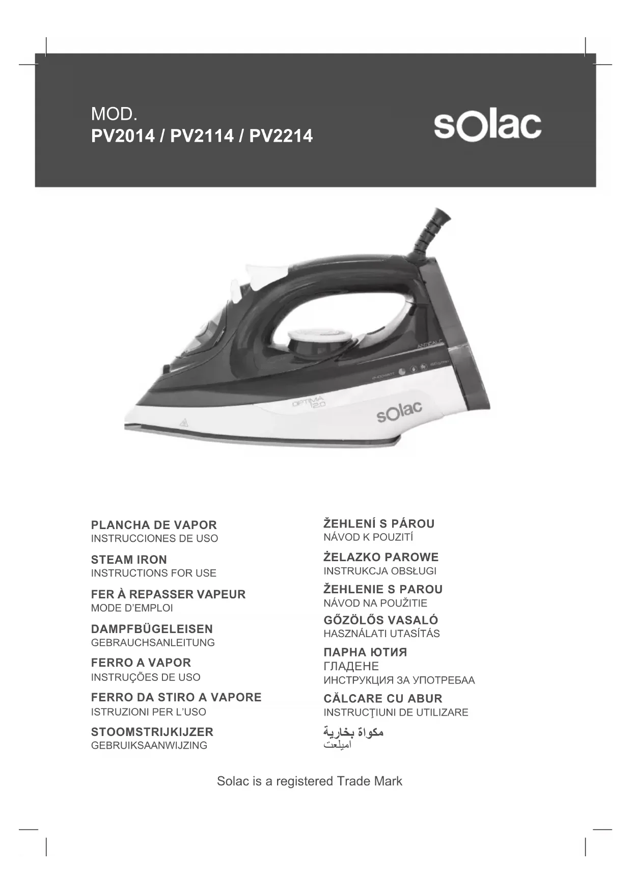 Optima Perfect PV2114 - Fer à repasser SOLAC - Notice d'utilisation et mode d'emploi gratuit