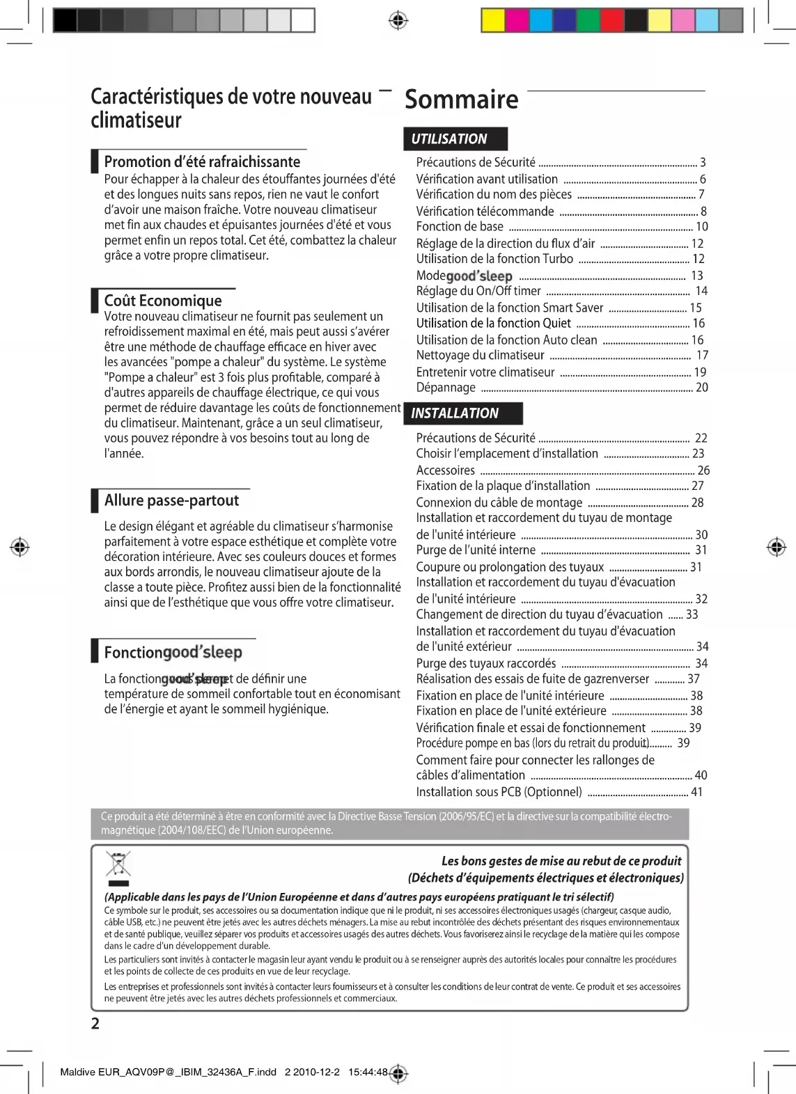 - LesousPCBestéquipépourêtrecontrôléparlatélécommandelaireetuncontrôleurcentral. Seulement pour un modèle de type multiple Sous PCB Couverture PCB Maldive EUR_AQV09P@_IBIM_32436A_F.indd 41 2010-12-2 15:45:38Maldive EUR_AQV09P@_IBIM_32436A_E.indd 42 2010-11-30 16:35:05