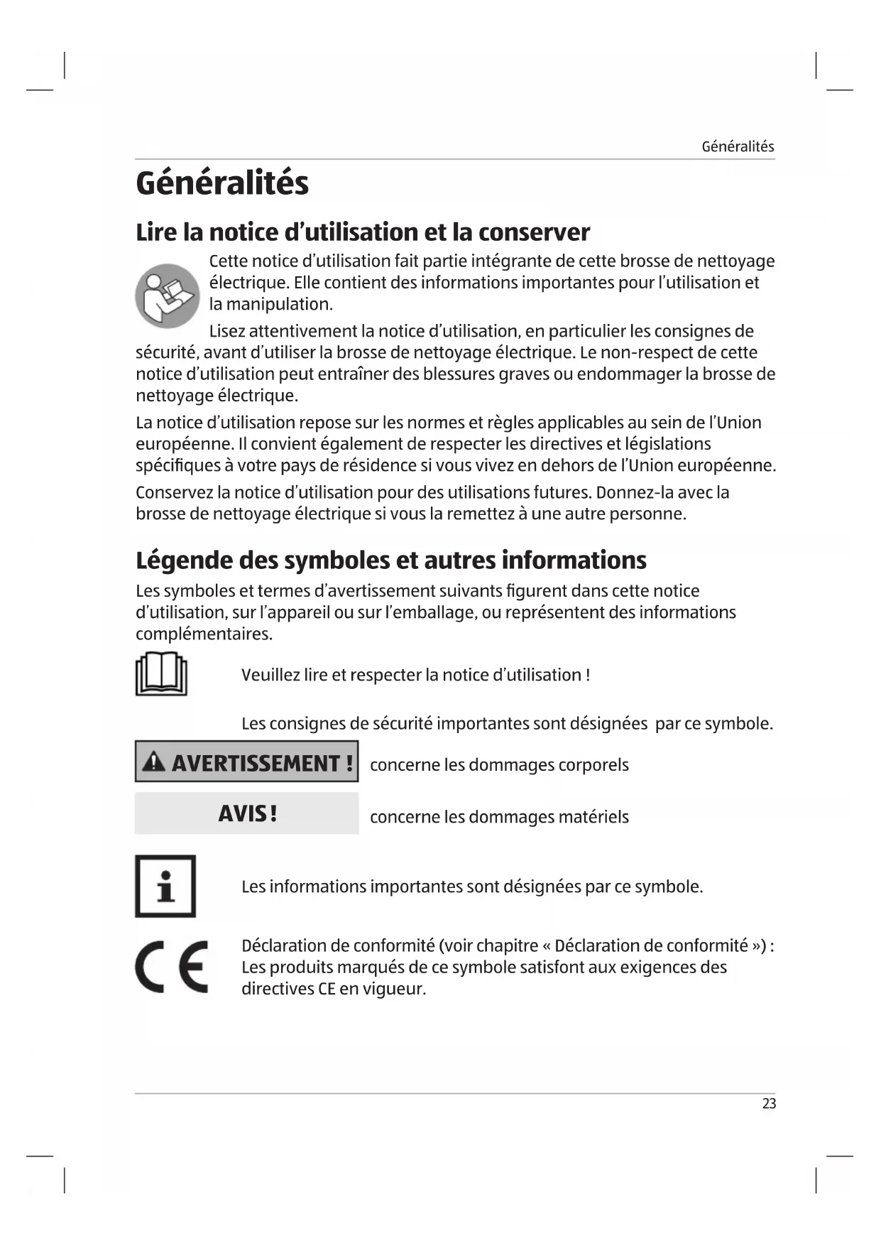 - Lire la notice d’utilisation et la conserver p. 23
