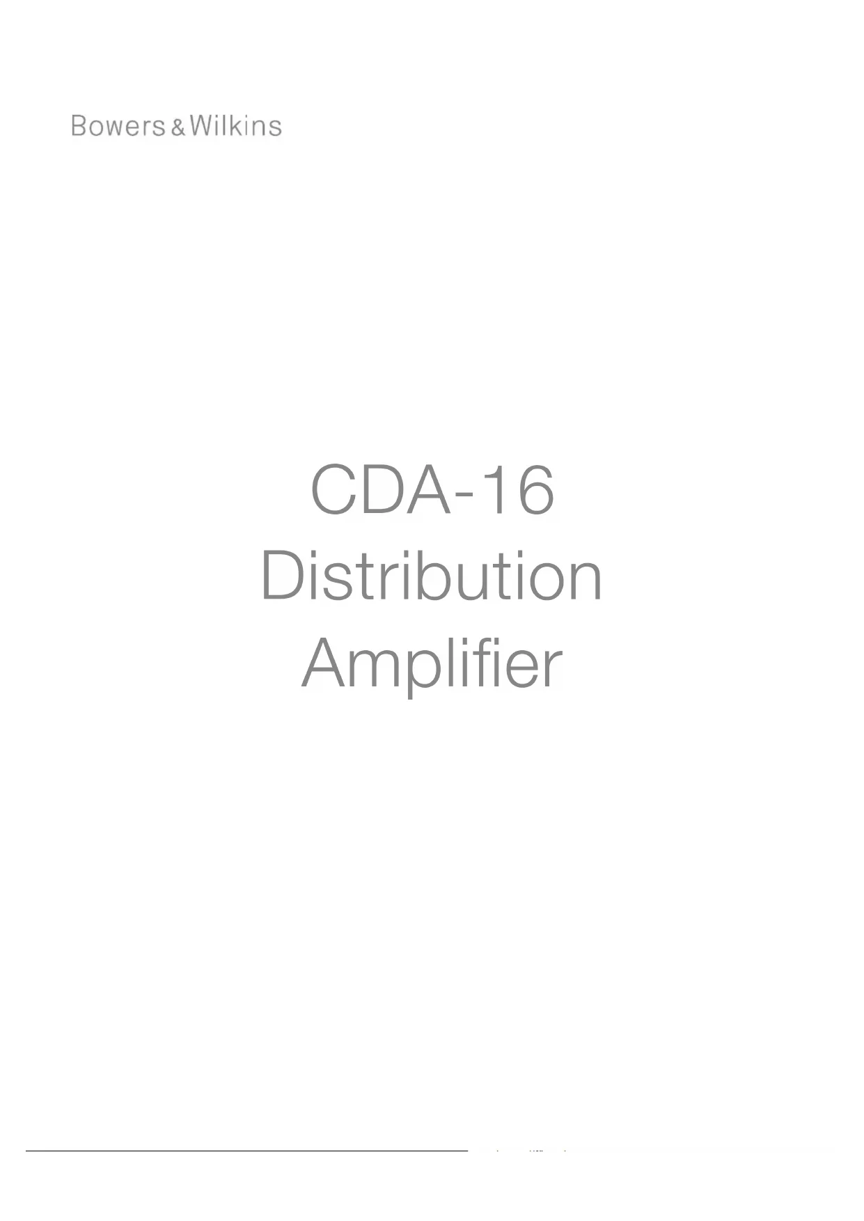 437 mm (17.2 in) 310 mm (12.2 in) Net weight: 4.5kg (9.9lb) Finish: Black8 FRANÇAIS bowerswilkins.com Bienvenue chez Bowers & Wilkins et au CDA-16 Merci d’avoir choisi Bowers & Wilkins. Quand John Bowers a créé notre entreprise, il l’a fait avec la conviction qu’une conception imaginative, une ingénierie innovante et des technologies de pointe seraient les clés qui ouvriraient les portes du plaisir de l’écoute à domicile. Ce qu’il croyait fait toujours partie de ce que nous continuons à partager, et inspire chacun de nos produits conçus pour de nouvelles expériences audio à l’extérieur du domicile. Notre amplicateur de puissance et de distribution CDA-16 peut alimenter n’importe quelles enceintes acoustiques d’intégration Bowers & Wilkins en atteignant de nouveaux sommets en termes de performances. Avec ses 16canaux, le CDA-16 pourra sonoriser l’intégralité de votre habitation dans un encombrement minimal grâce à sa conception compacte 1U. Il est en outre entièrement congurable, ses canaux stéréo en Classe D pouvant être bridgés pour offrir encore plus de puissance en mono si nécessaire. Fonctionnalités