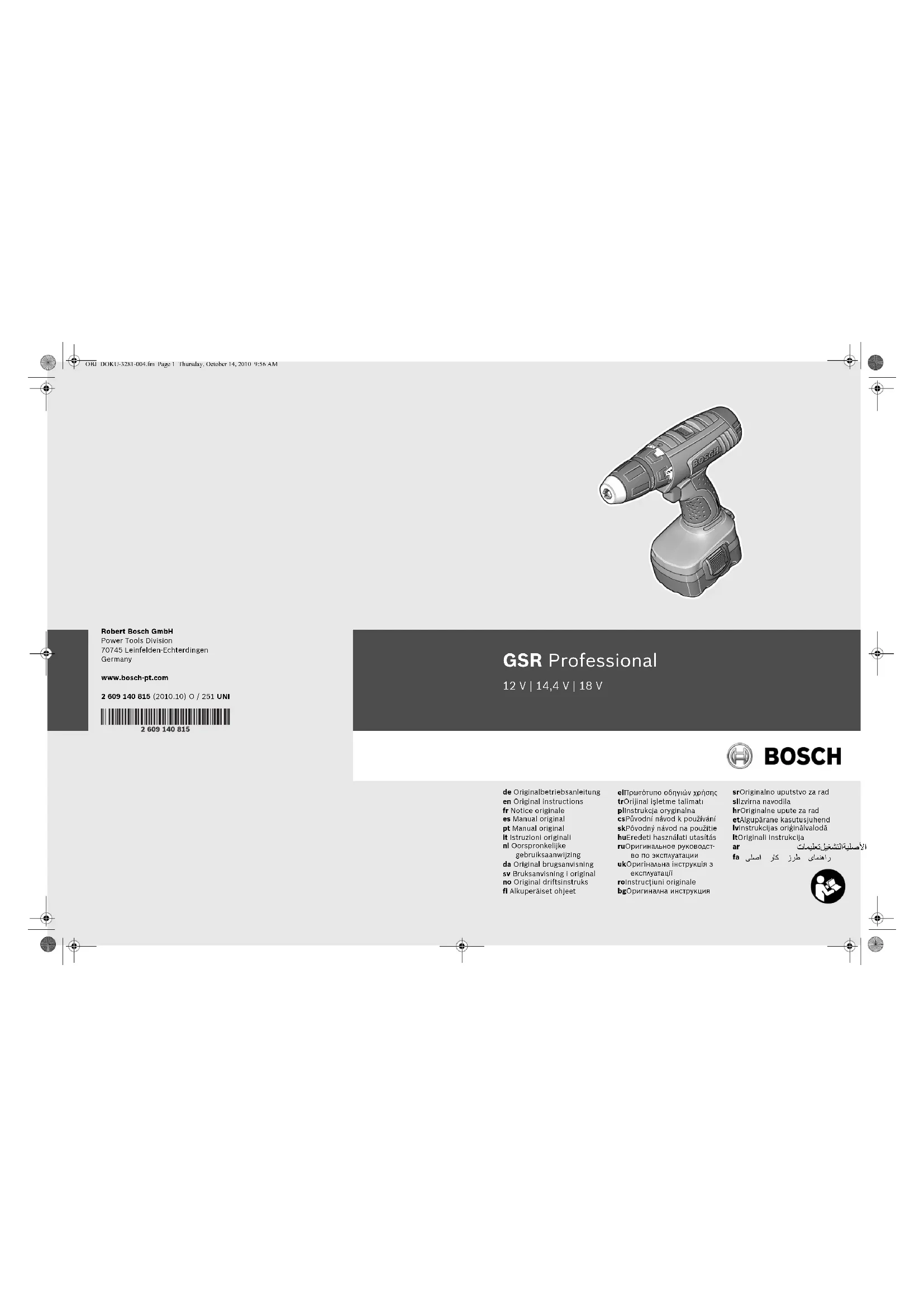 GSR 18V Professional - Perceuse BOSCH - Notice d'utilisation et mode d'emploi gratuit