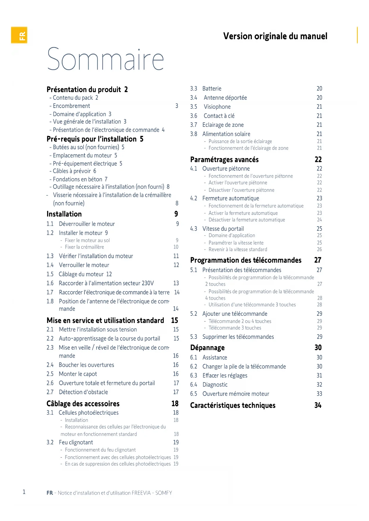 Caractéristiques techniques 34 Version originale du manuel2 FR - Notice d’installation et d’utilisation FREEVIA - SOMFY