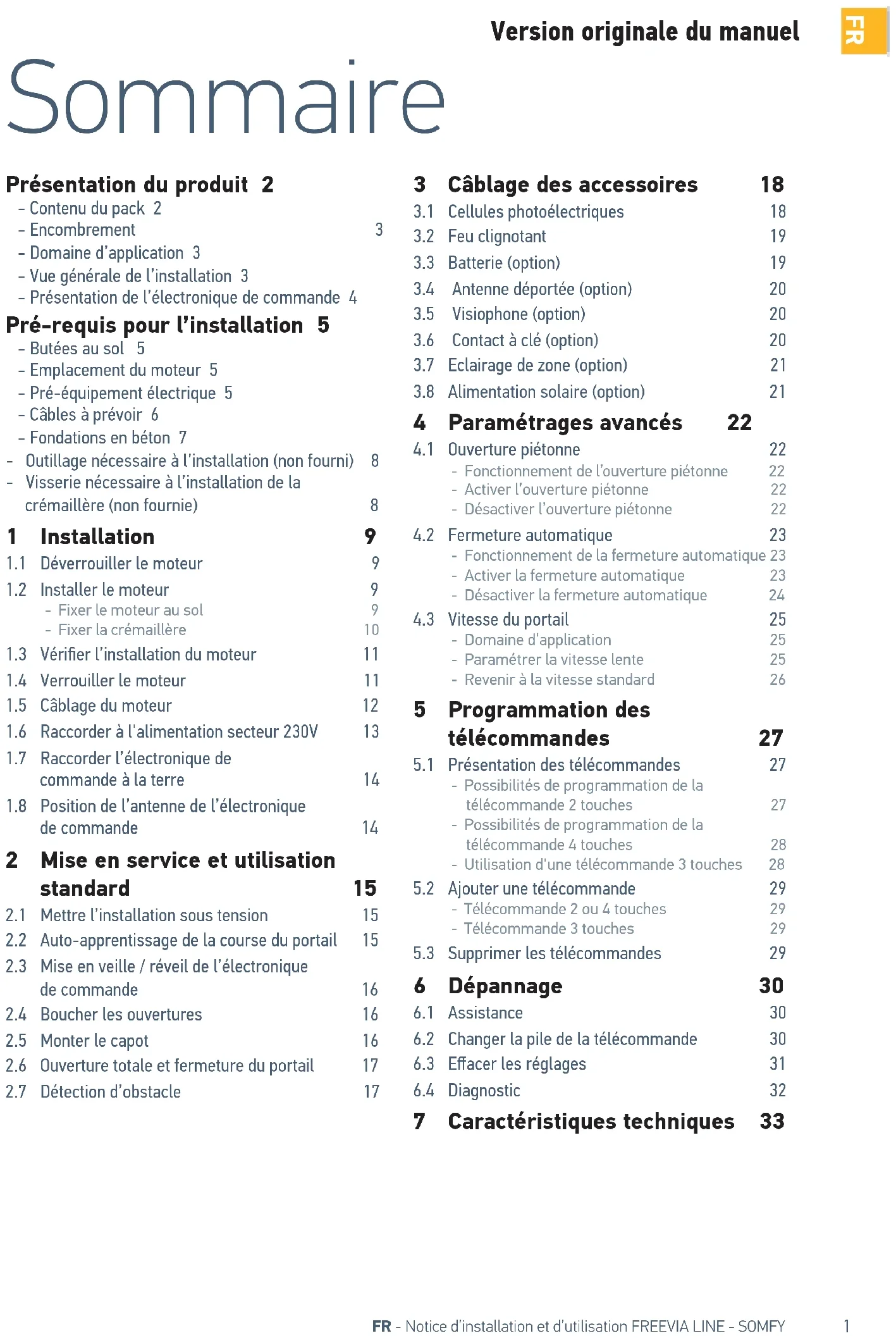 7 Caractéristiques techniques 33 Version originale du manuel2 FR - Notice d’installation et d’utilisation FREEVIA LINE - SOMFY