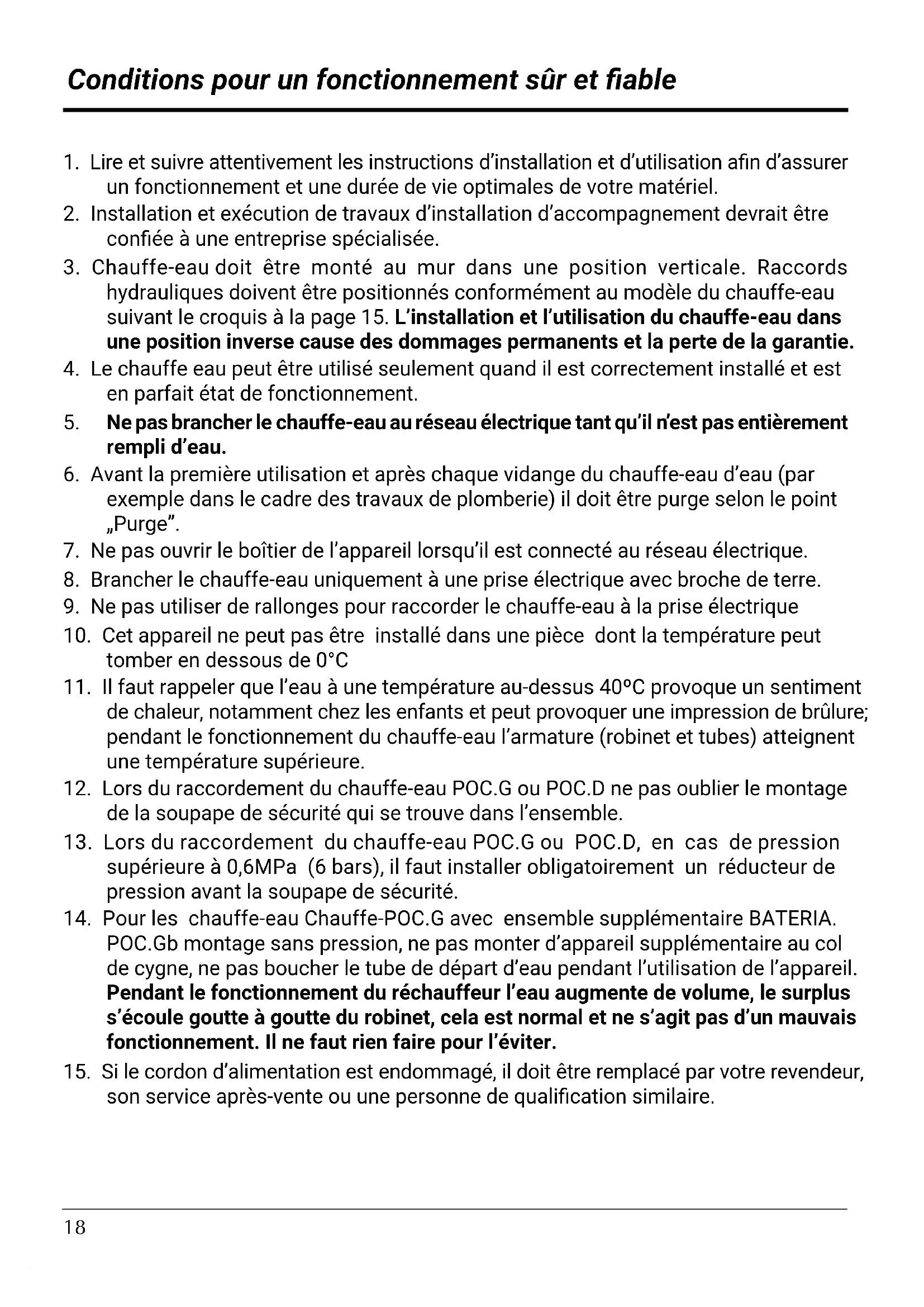 4,4 POC.10 6,1 Safety class IP24 Water heater ttings G 1/2" EN18 Conditions pour un fonctionnement sûr et able