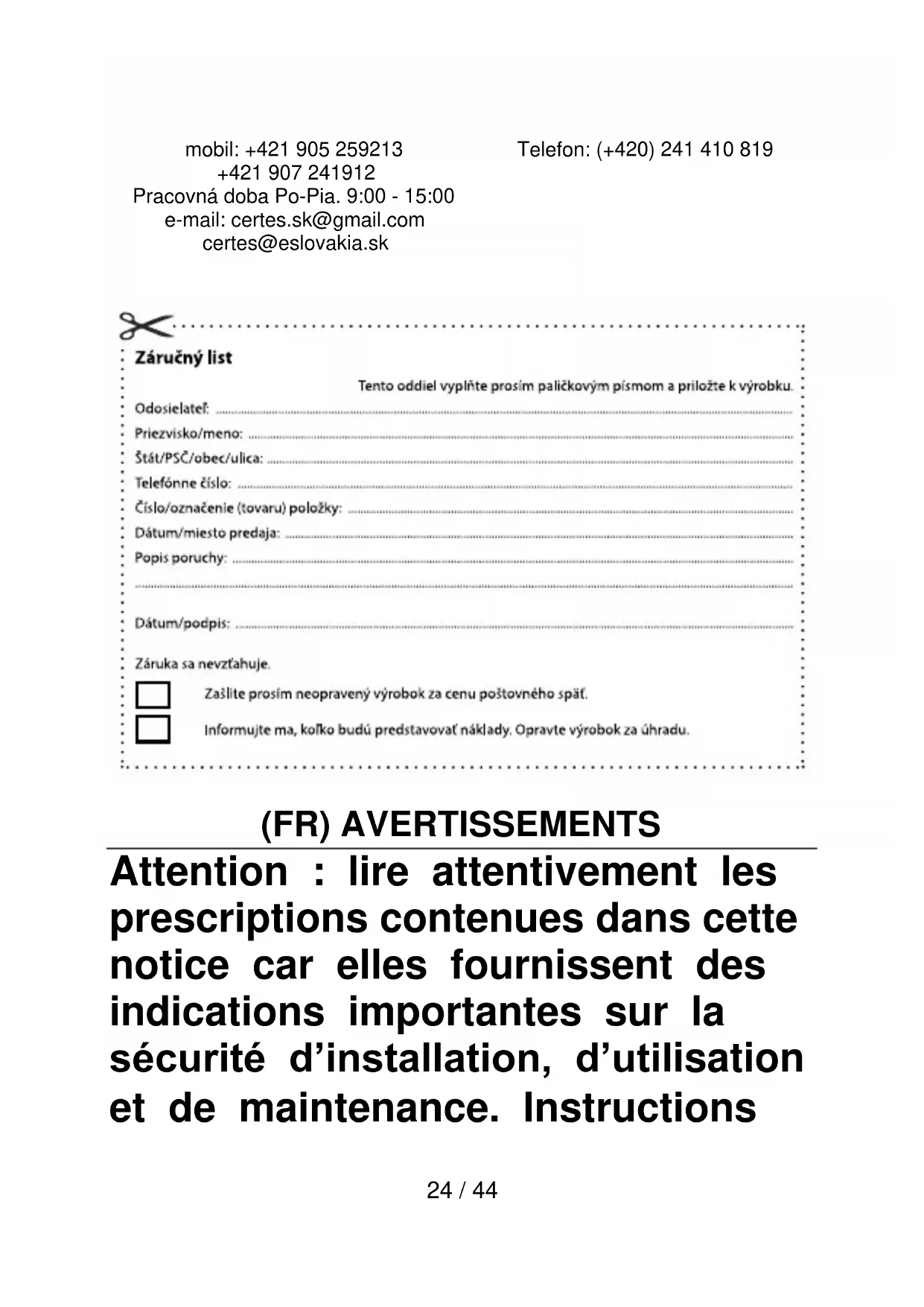 MODE D'EMPLOI ARZANSC01W ARDES