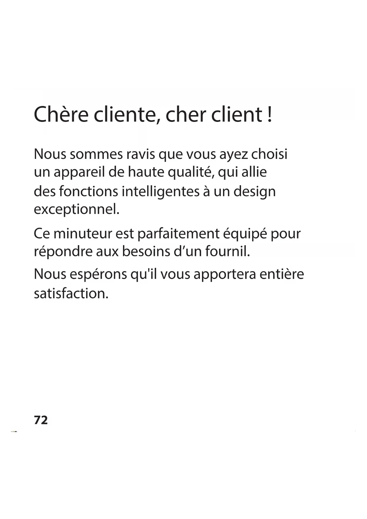 Les piles et batteries ne doivent pas être éliminées avec les déchets ménagers Toutes les piles et batteries doivent être déposées dans un point de collecte de votre localité ou rapportées à leur point d’achat. Les piles et batteries seront ainsi traitées dans le respect de l’environnement.96 Gentile cliente! La ringraziamo per aver scelto un prodotto di alta qualità che unisce funzioni intelligenti e un design fuori dal comune. Questo timer è perfettamente adatto alle esigenze di una panetteria. Vi auguriamo buon divertimento!97