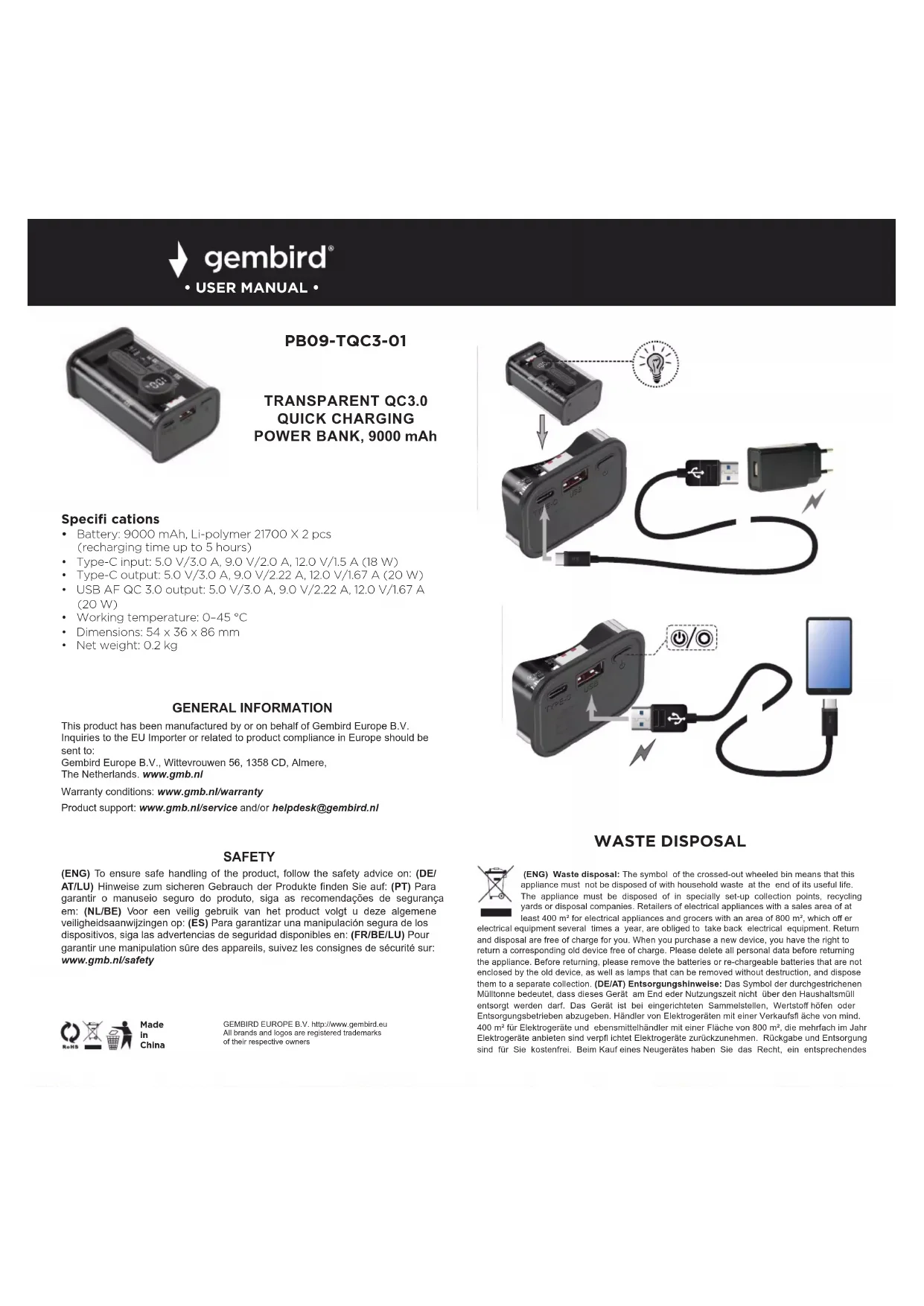 PB09-TQC3-01 - Batterie portable Gembird - Notice d'utilisation et mode d'emploi gratuit