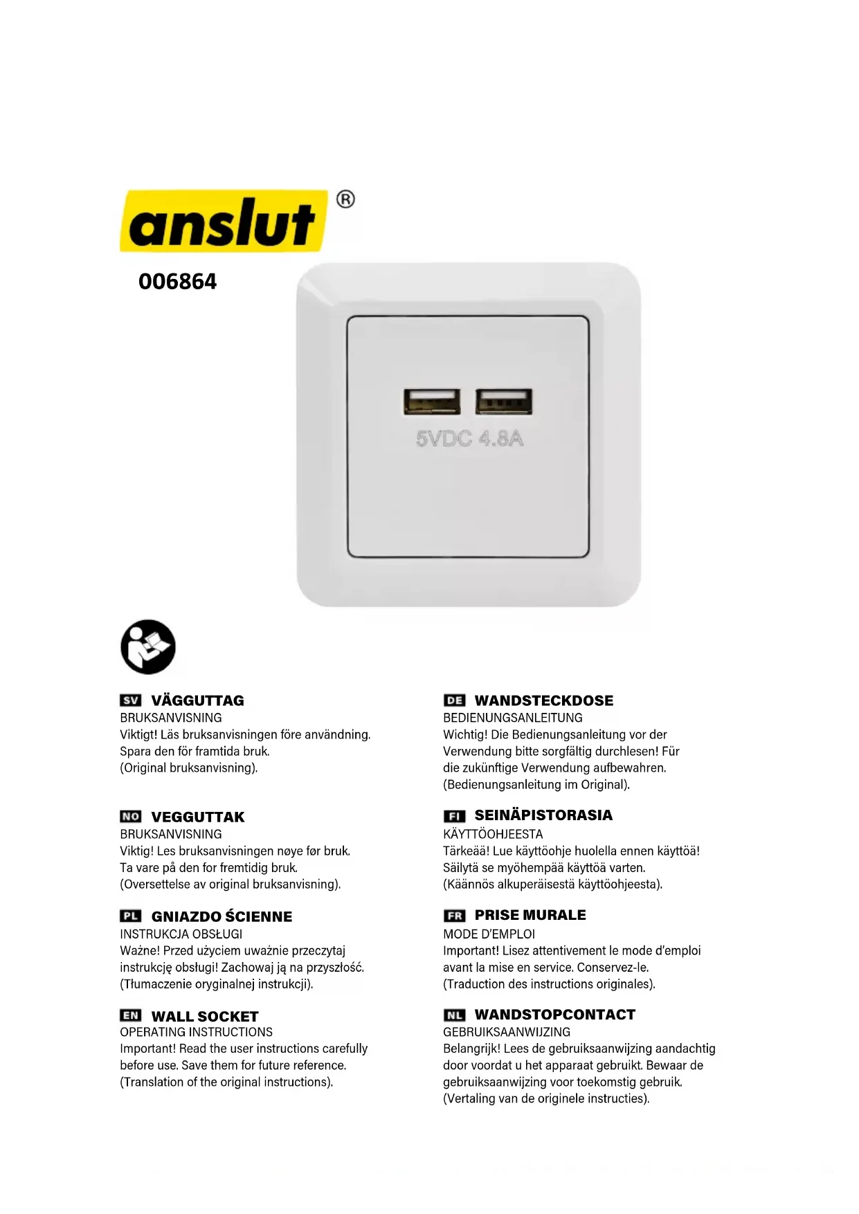 006864 - Prise murale Anslut - Notice d'utilisation et mode d'emploi gratuit
