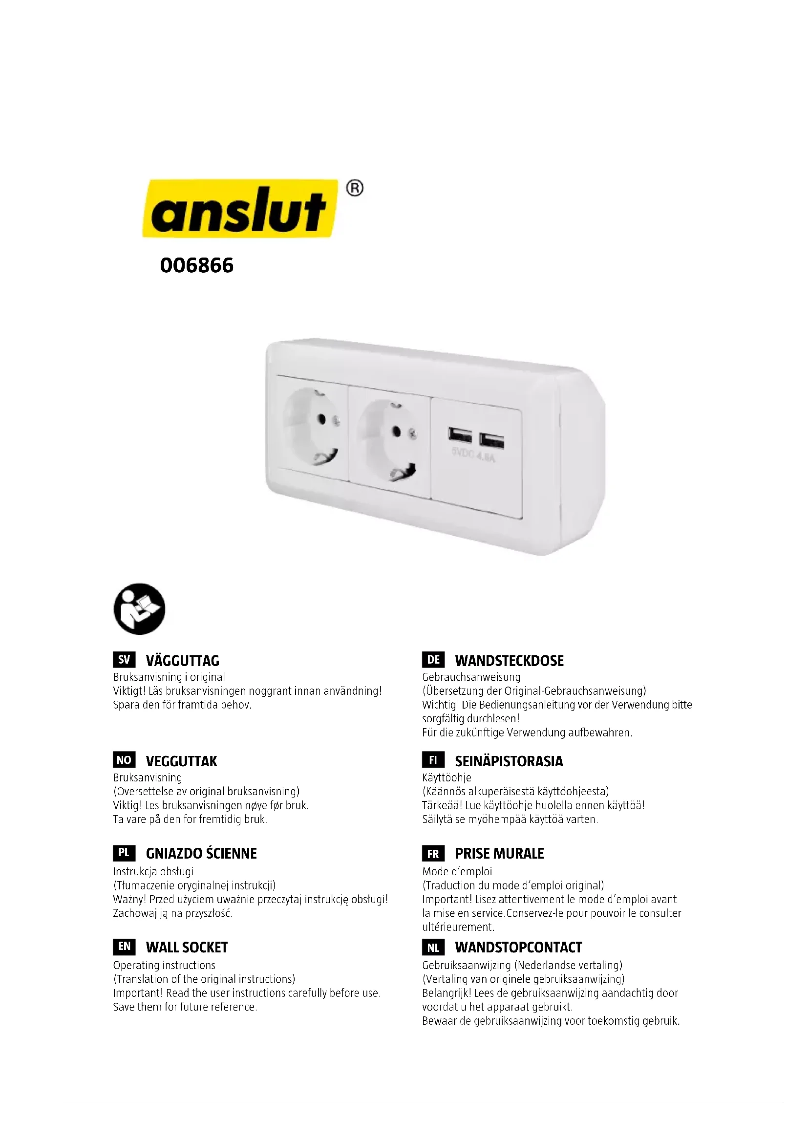 006866 - Prise murale Anslut - Notice d'utilisation et mode d'emploi gratuit