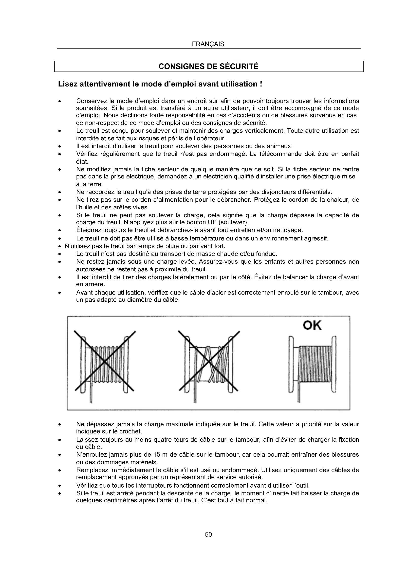- Toute personne utilisant le treuil doit avoir préalablement lu et compris le mode d’emploi.