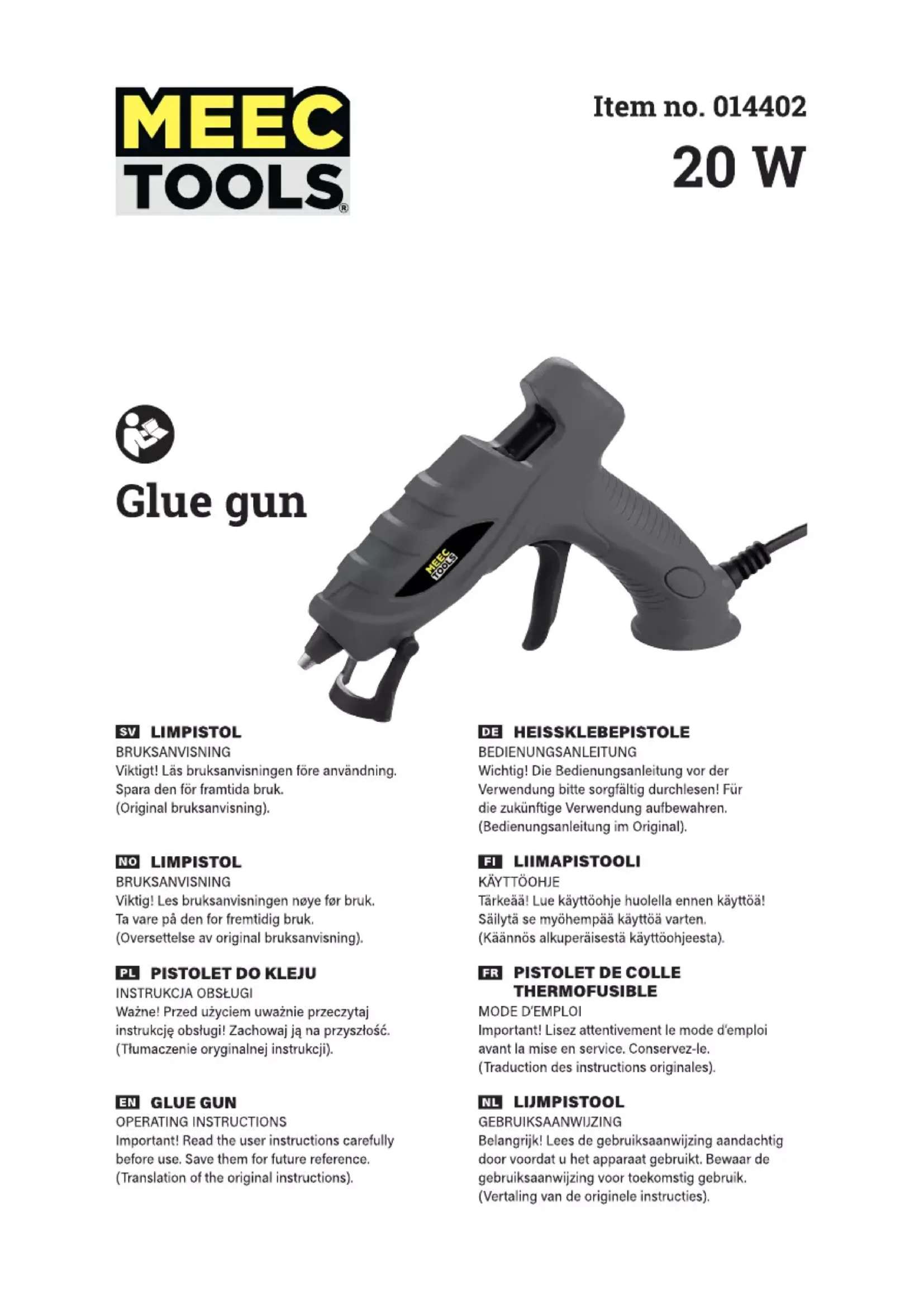 014402 - Pistolet à colle Meec Tools - Notice d'utilisation et mode d'emploi gratuit
