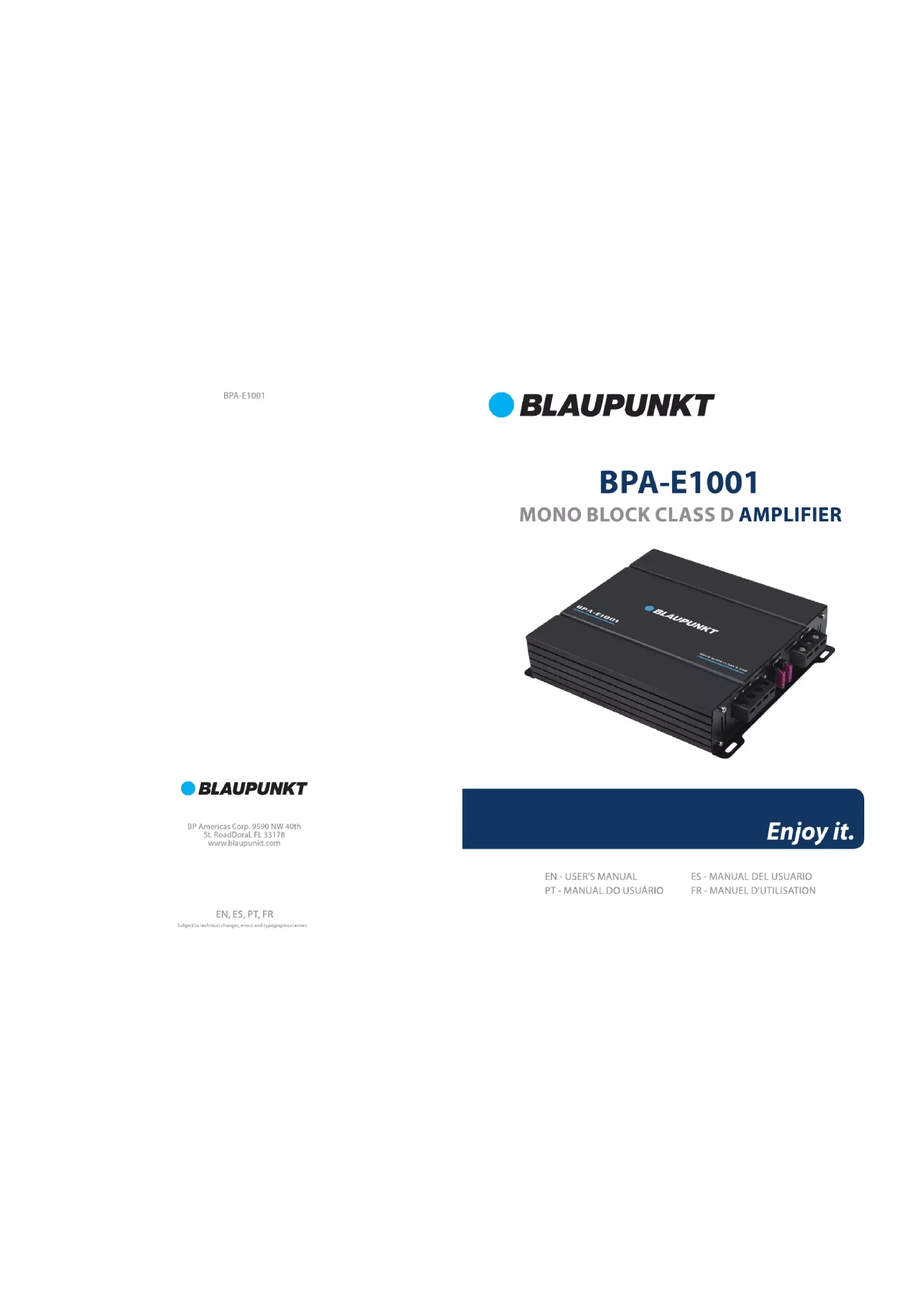 BPA-E1001 - Recepteur BLAUPUNKT - Notice d'utilisation et mode d'emploi gratuit