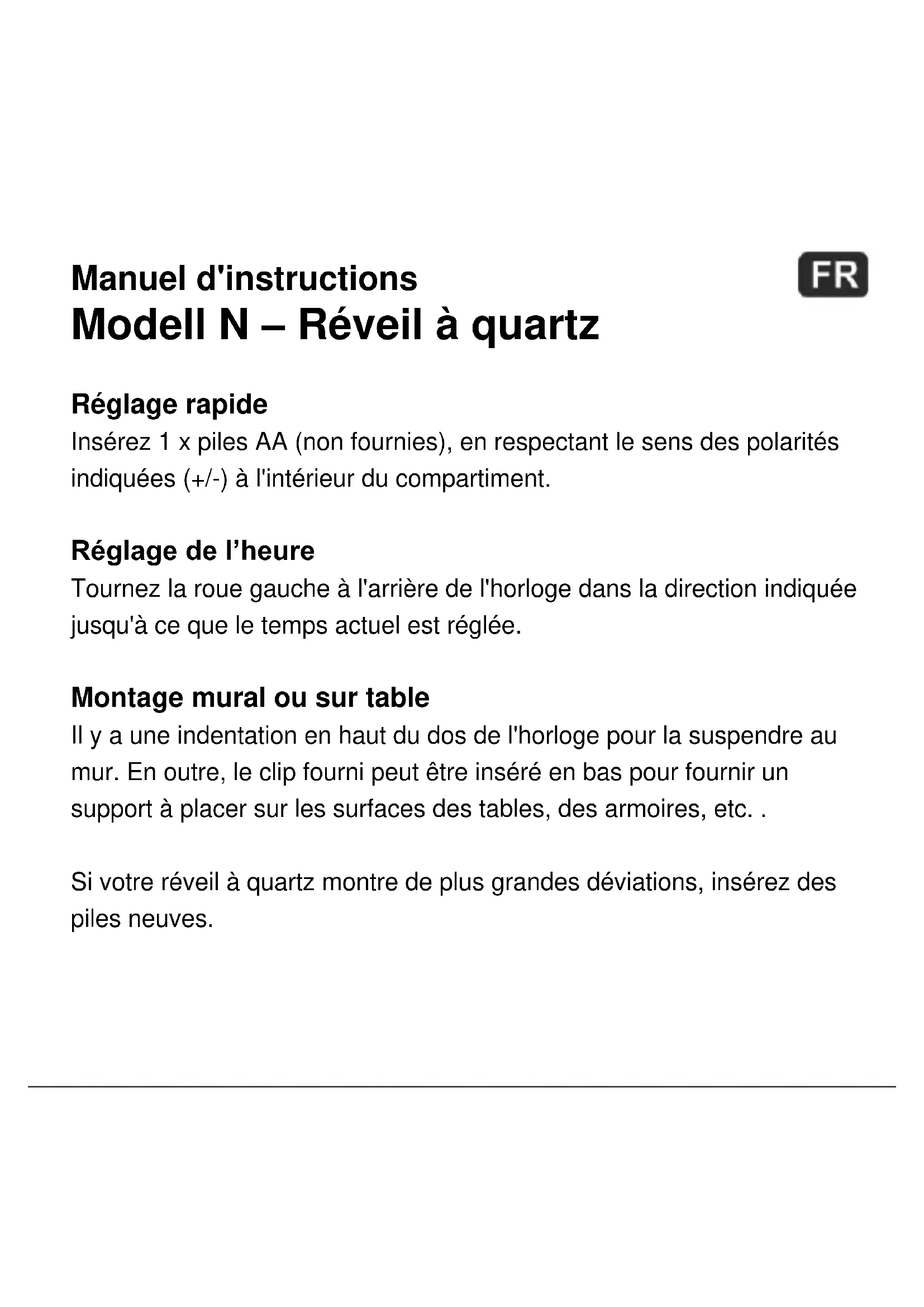 Modell N - Radio-réveil TECHNOLINE - Notice d'utilisation et mode d'emploi gratuit