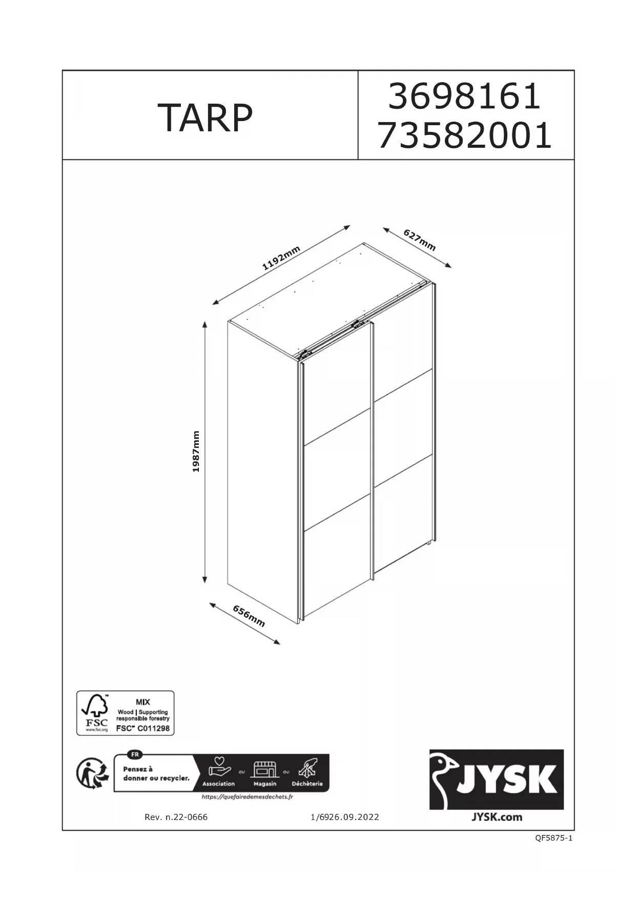 TARP 120x201 - Armoire JYSK - Notice d'utilisation et mode d'emploi gratuit