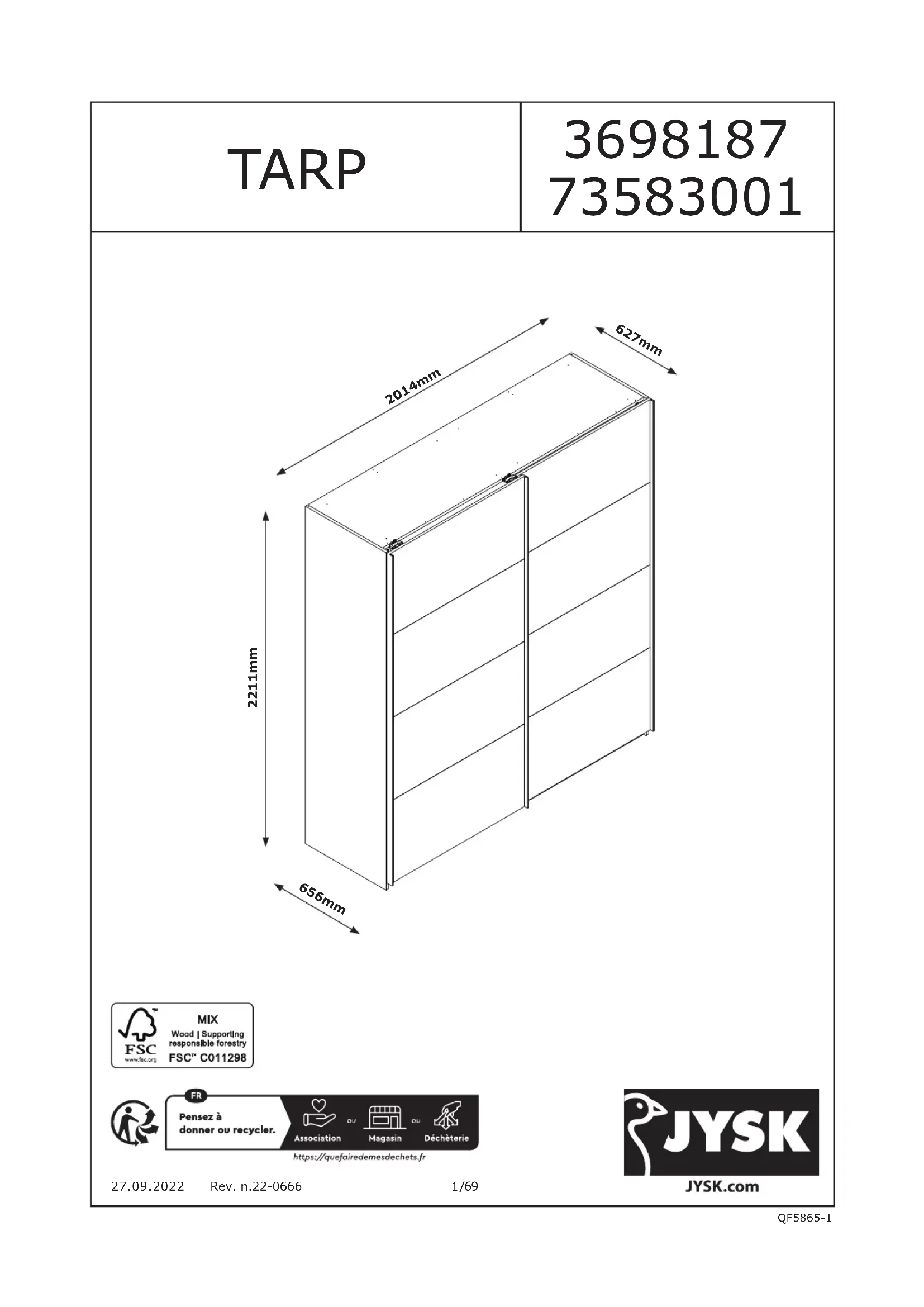TARP 202x221 - Armoire JYSK - Notice d'utilisation et mode d'emploi gratuit