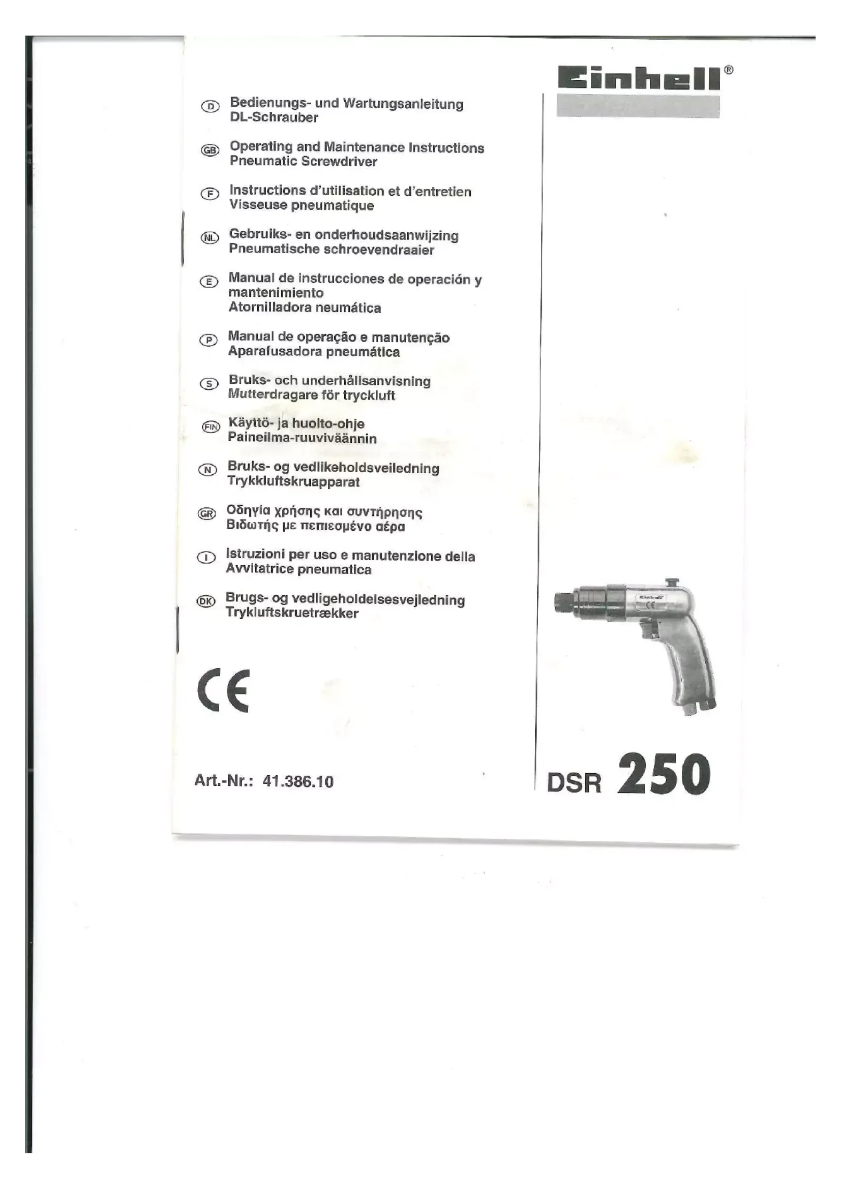 Retrouvez gratuitement la notice de l'appareil DSR 250 EINHELL au format PDF.
