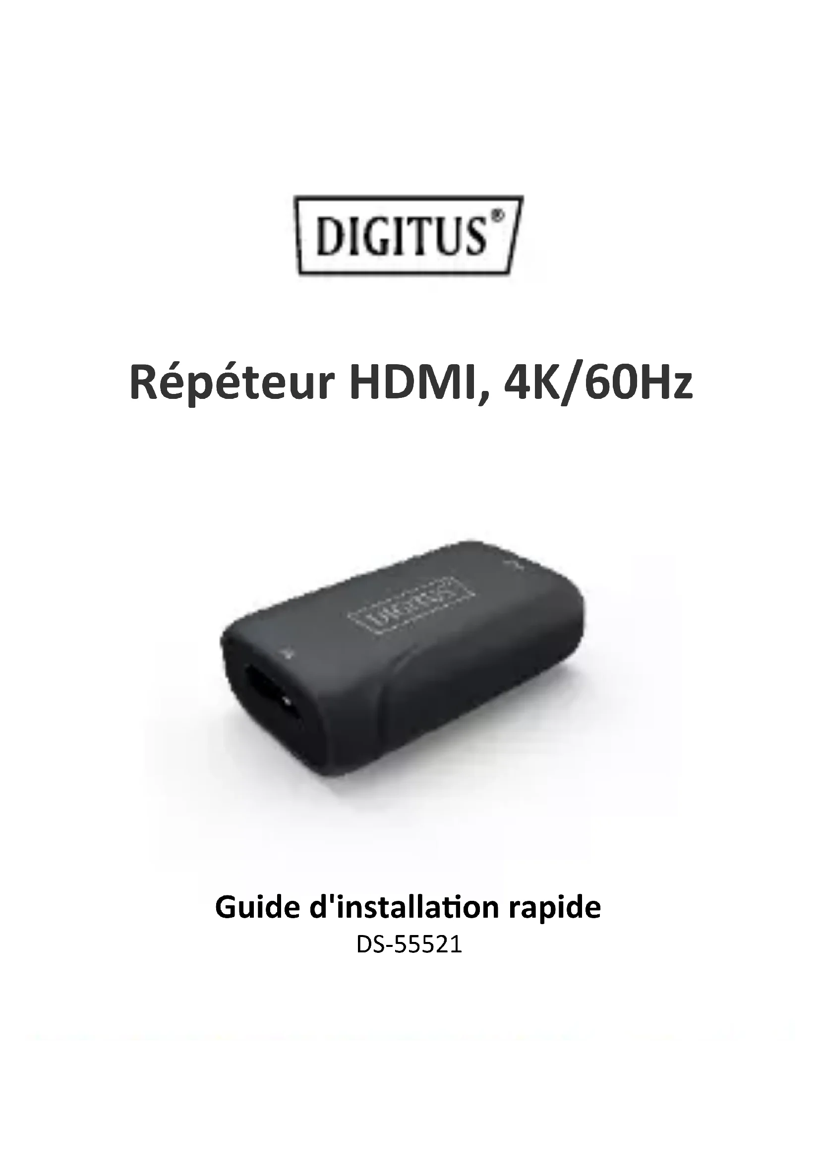 Répéteur HDMI, 4K/60Hz Guide d'installation rapide DS-555212