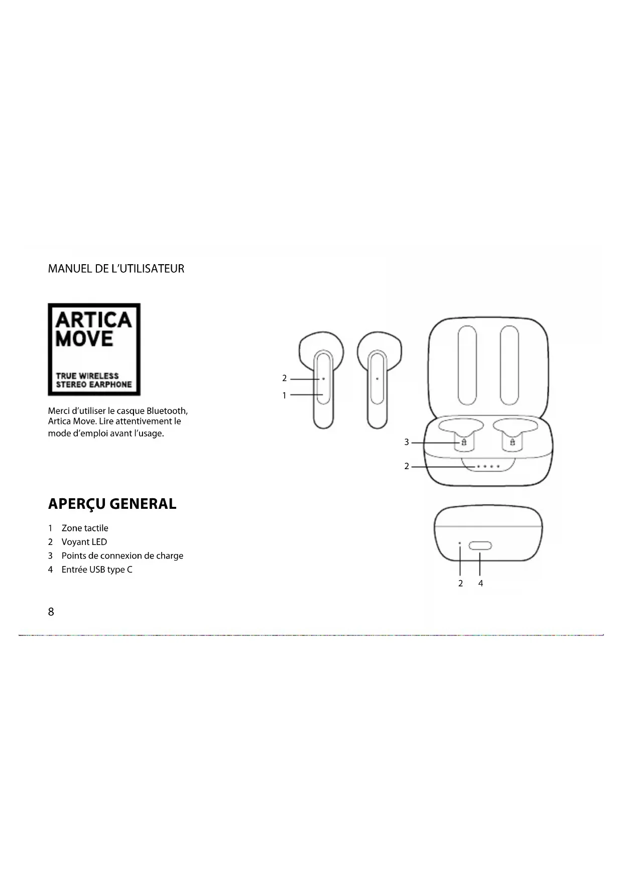 Merci d’utiliser le casque Bluetooth, Artica Move. Lire attentivement le mode d’emploi avant l’usage.