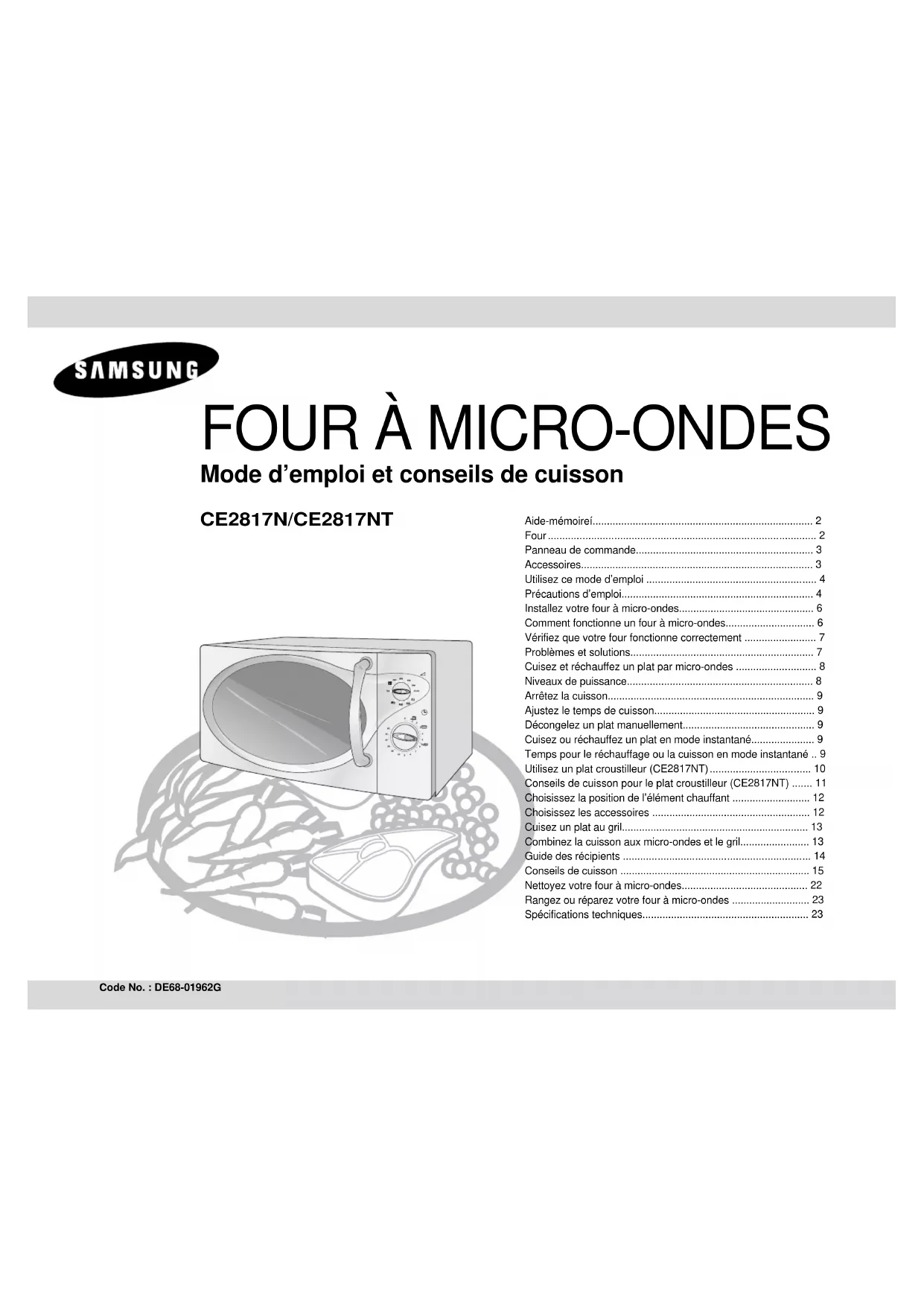 - Code No. : DE68-01962G FOUR À MICRO-ONDES Mode d’emploi et conseils de cuisson CE2817N/CE2817NT Aide-mémoireí p. 2