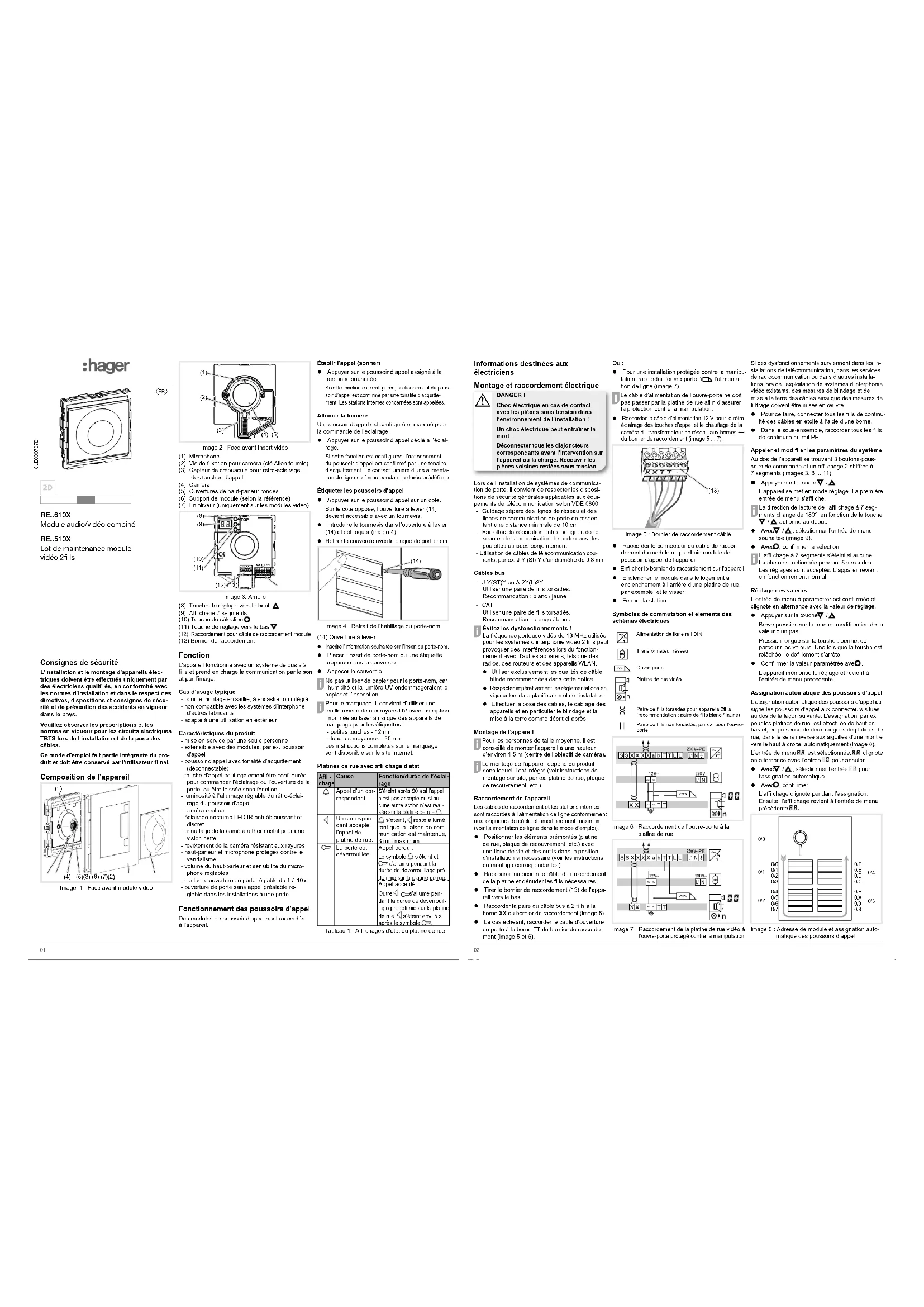 0403 Tehalit GmbH, Seebergstraße 37, 67716 Heltersberg, Germany T +49 6333 992 0 F +49 6333 992 7666 info@hager.com hager.com - 03.2023 Adresse/fonction de poussoir d’appel unique Appuyer sur le poussoir d’appel à confi gurer ... = Adresse du poussoir d’appel = Interrupteur d’éclairage = Poussoir ouvre-porte = Aucune fonction Adresse/fonction enregistrée, s’affi che Assignation auto- matique des poussoirs d’appel = Annuler = Démarrer l’assignation Assignation réalisée/annulée, s’affi che Haut-parleur de porte Volume