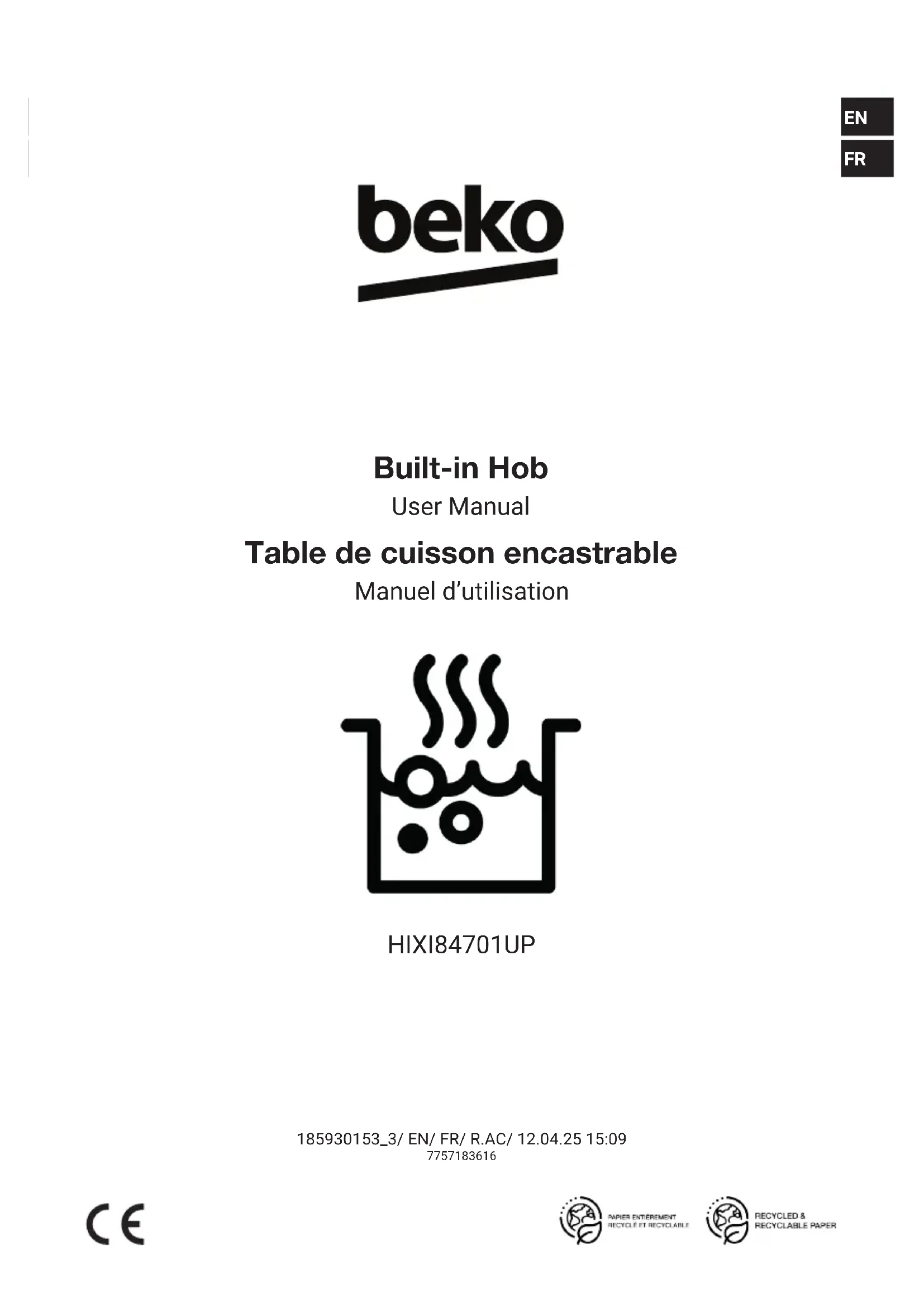 HIXI84701UP - Cuisinière BEKO - Notice d'utilisation et mode d'emploi gratuit