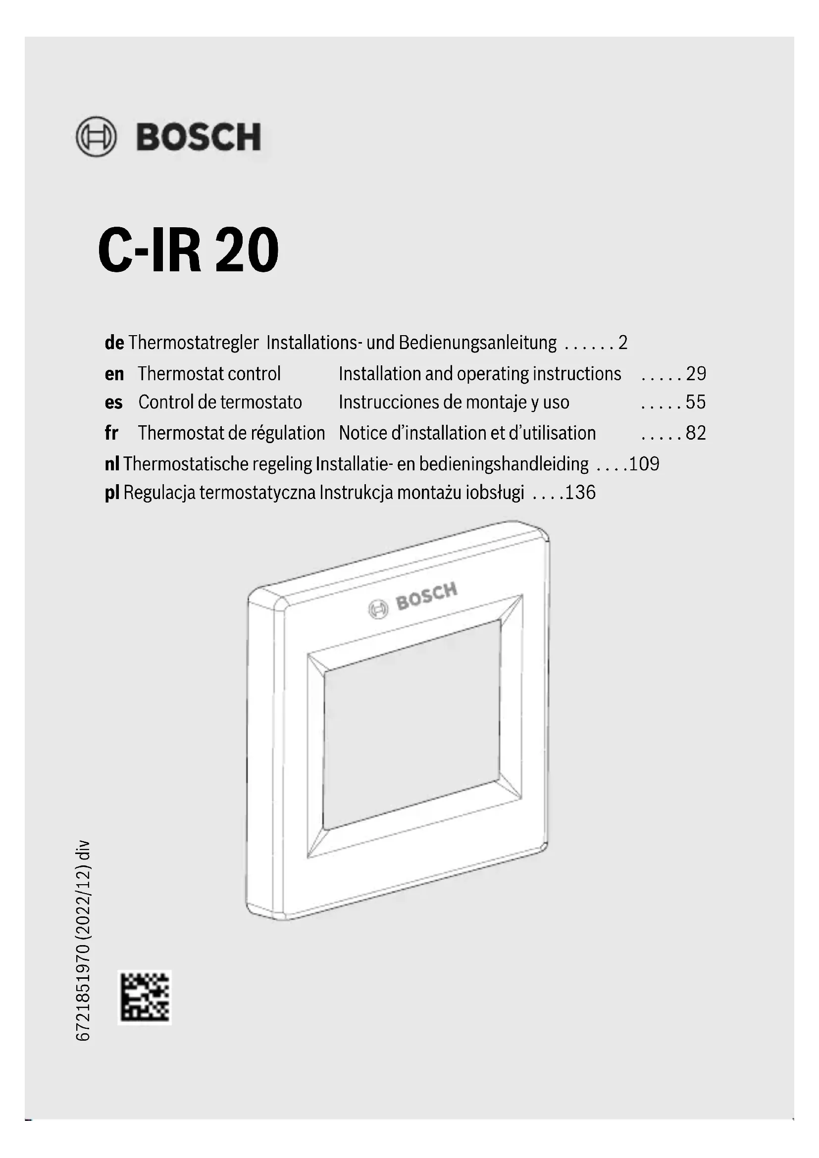C-IR 20 - Thermostat BOSCH - Notice d'utilisation et mode d'emploi gratuit