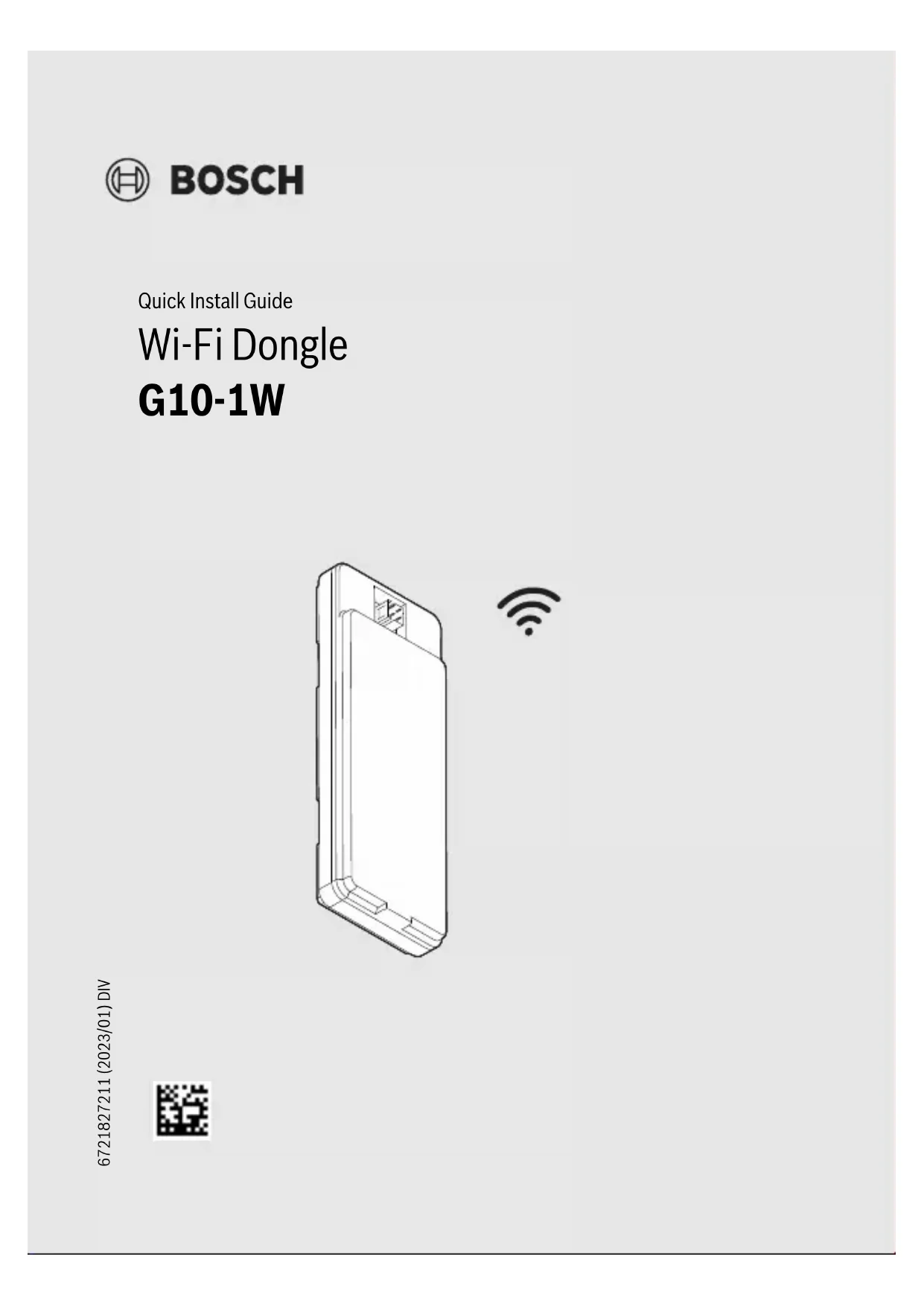 Officer, Information Security and Privacy (C/ISP), Robert Bosch GmbH, Postfach 30 02 20, 70442 Stuttgart, GERMANY. You have the right to object, on grounds relating to your particular situation or where personal data are processed for direct marketing purposes, at any time to processing of your personal data which is based on art. 6 (1) sentence 1 (f) GDPR / UK GDPR. To exercise your rights, please contact us via privacy.ttgb@bosch.com To find further information, please follow the QR-Code.15 G10-1W – 6721827211 (2023/01) Consignes générales de sécurité 1 Consignes générales de sécurité Consignes pour le groupe cible Cette notice d’installation s’adresse à l’utilisateur de l’appareil ainsi qu’aux installa- teurs qualifiés pour le gaz, l’eau, le chauffage et l’électricité. ▶ Respecter les consignes de toutes les notices des composants de l'installation. ▶ Respecter les consignes de sécurité et d’avertissement. ▶ Respecter les règlements nationaux et locaux, ainsi que les règles techniques et les directives. Le non-respect peut entraîner des dommages matériels, des dommages corporels, voire la mort. Utilisation conforme à l’usage prévu ▶ Utiliser ce produit exclusivement pour réguler l’appareil. Toute autre utilisation n’est pas conforme. Les dégâts éventuels qui en résulteraient sont exclus de la garantie. La tension d’ alimentation du dongle Wi-Fi G10-1W doit être fournie par une source d’alimentation avec une puissance limitée, classée comme ES1 et PS1, conformé- ment à la norme CEI 62368-1. Cet appareil répond aux limites d’exposition de l’EN 62311 :2020 et a été évalué conformément aux conditions d’utilisation portable. Il n’existe pas de valeur limite quant à la distance au corps humain 2Mises à jour Pour respecter les mises à jour du logiciel pour G10-1W: ▶ Enregistrer G10-1W via HomeCom Easy App. ▶ Accepter les conditions d’utilisation. ▶ Connecter G10-1W à Internet.Logiciel Open Source G10-1W – 6721827211 (2023/01)