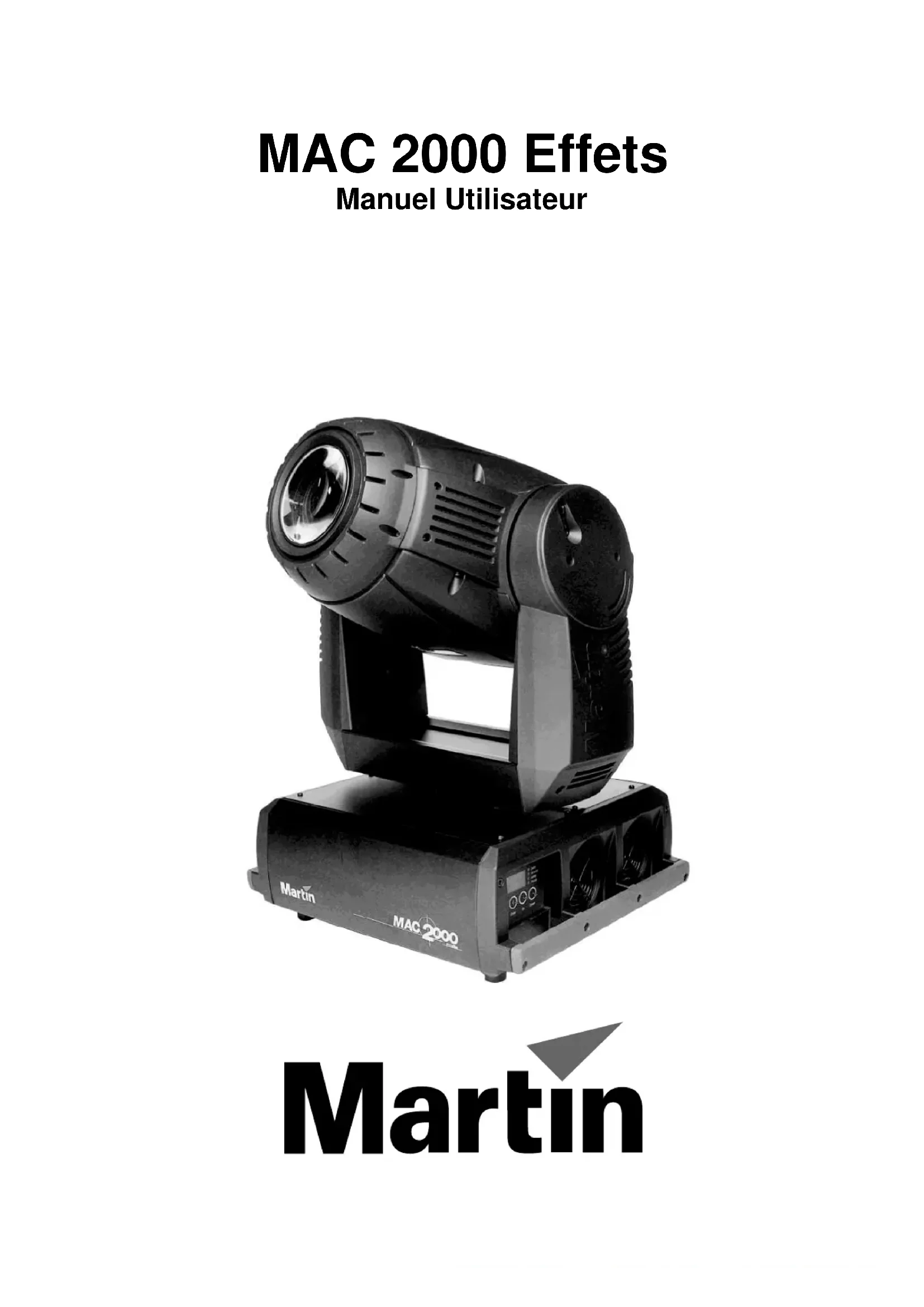 MAC 2000 Effets Manuel Utilisateur© 2000 Martin Professional A/S, Danemark. Tous droits réservés. Aucun extrait de ce manuel ne peut être reproduit, sous quelque forme ou par quelque moyen que ce soit, sans permission écrite de Martin Professional A/S, Danemark. Imprimé en France P/N 35000090 Révision BIntroduction
