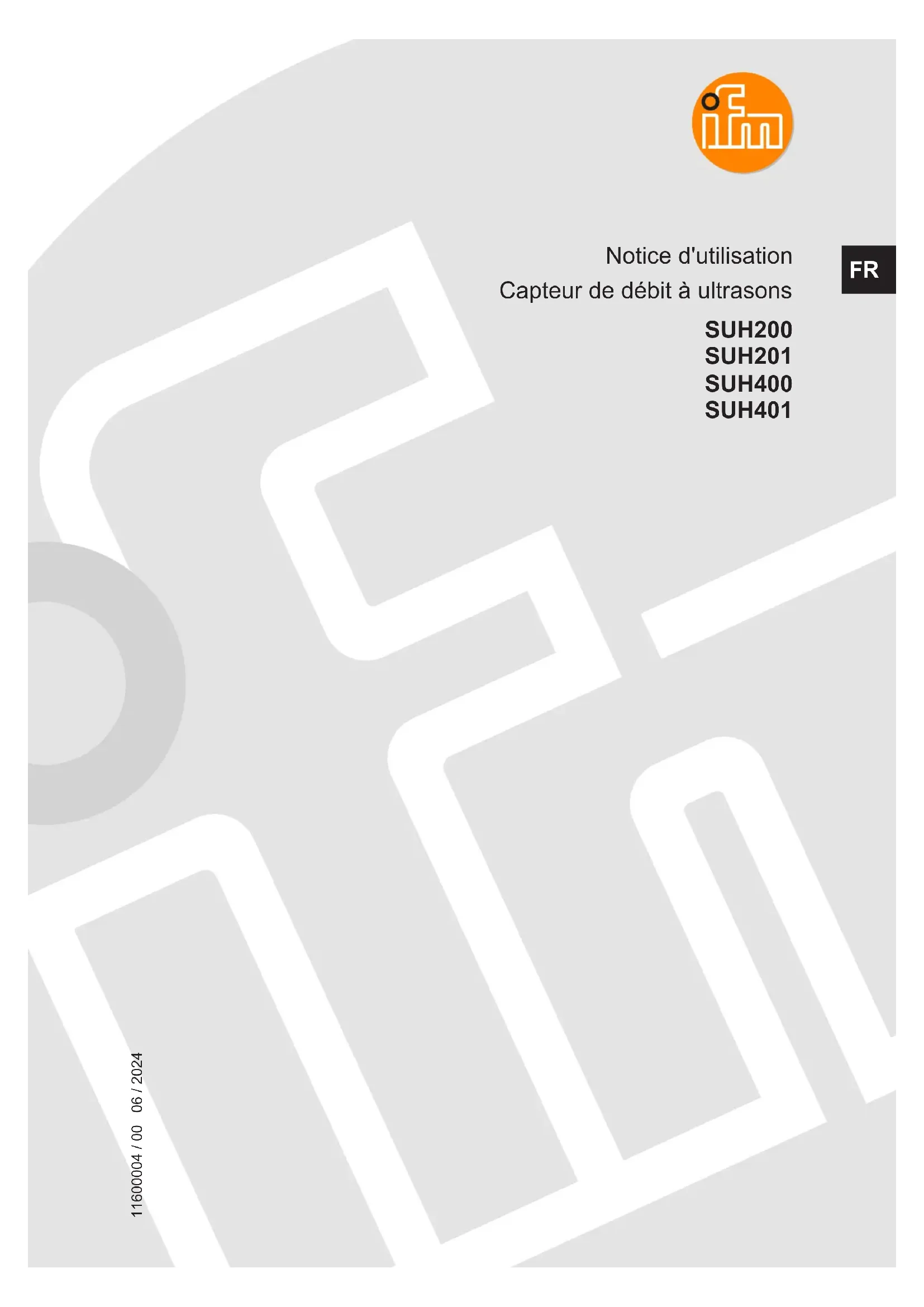 Notice d'utilisation Capteur de débit à ultrasons SUH200 SUH201 SUH400 SUH401 11600004 / 0006 / 2024 FRSUH200 SUH201 SUH400 SUH401 Capteur de débit à ultrasons