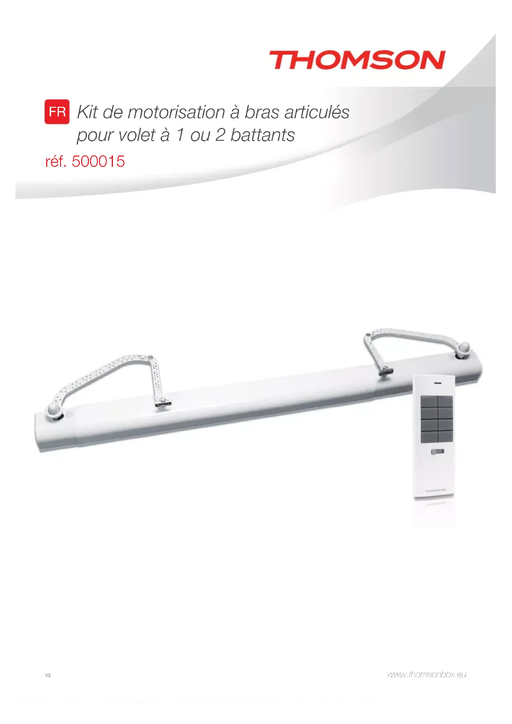Kit de motorisation à bras articulés pour volet à 1 ou 2 battants réf. 500015 www.thomsonbox.eu V3Kit de motorisation à bras articulés pour Volet à 1 ou 2 battants SOMMAIRE A - cOnSIgnES dE SécuRIté 05