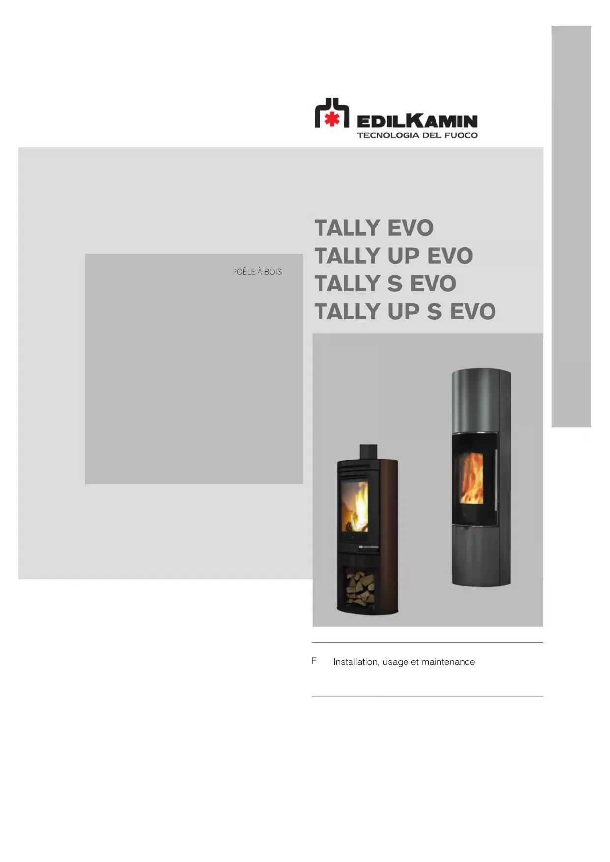 Déclare sous sa propre responsabilité: Les poêles à bois indiqués ci-dessous sont conformes au Règlement UE 305/2011 et à la Norme européenne harmonisée EN 13240:2001 + A2:2004 + AC:2006 + AC:2007 POÊLE À BOIS, avec marque commerciale EDILKAMIN, dénommé TALLY EVO / TALLY UP EVO / TALLY S EVO /TALLY UP S EVO La garantie d’Edilkamin est limitée uniquement au produit.FRANÇAIS