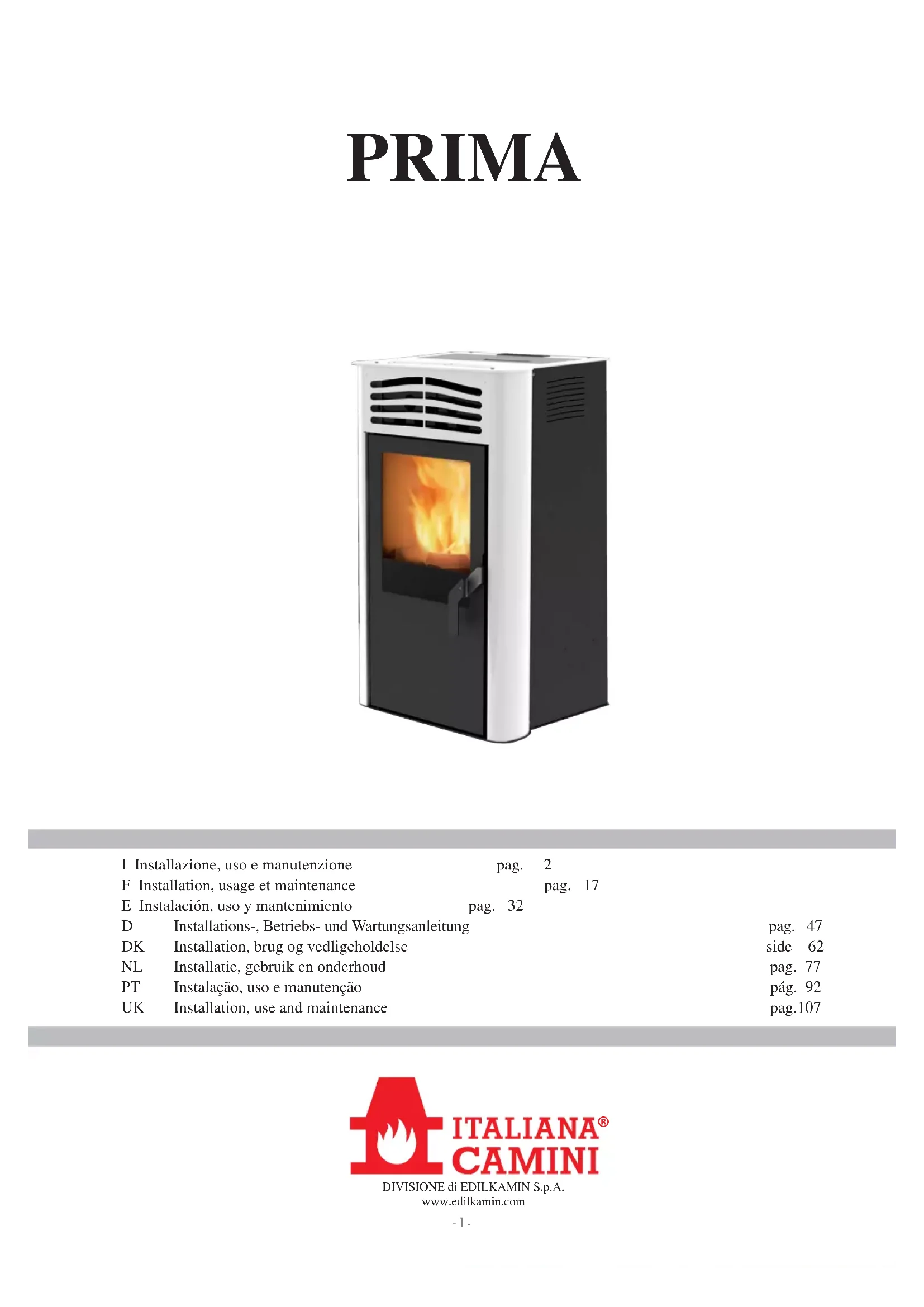 PRIMA - Poêle EDILKAMIN - Notice d'utilisation et mode d'emploi gratuit