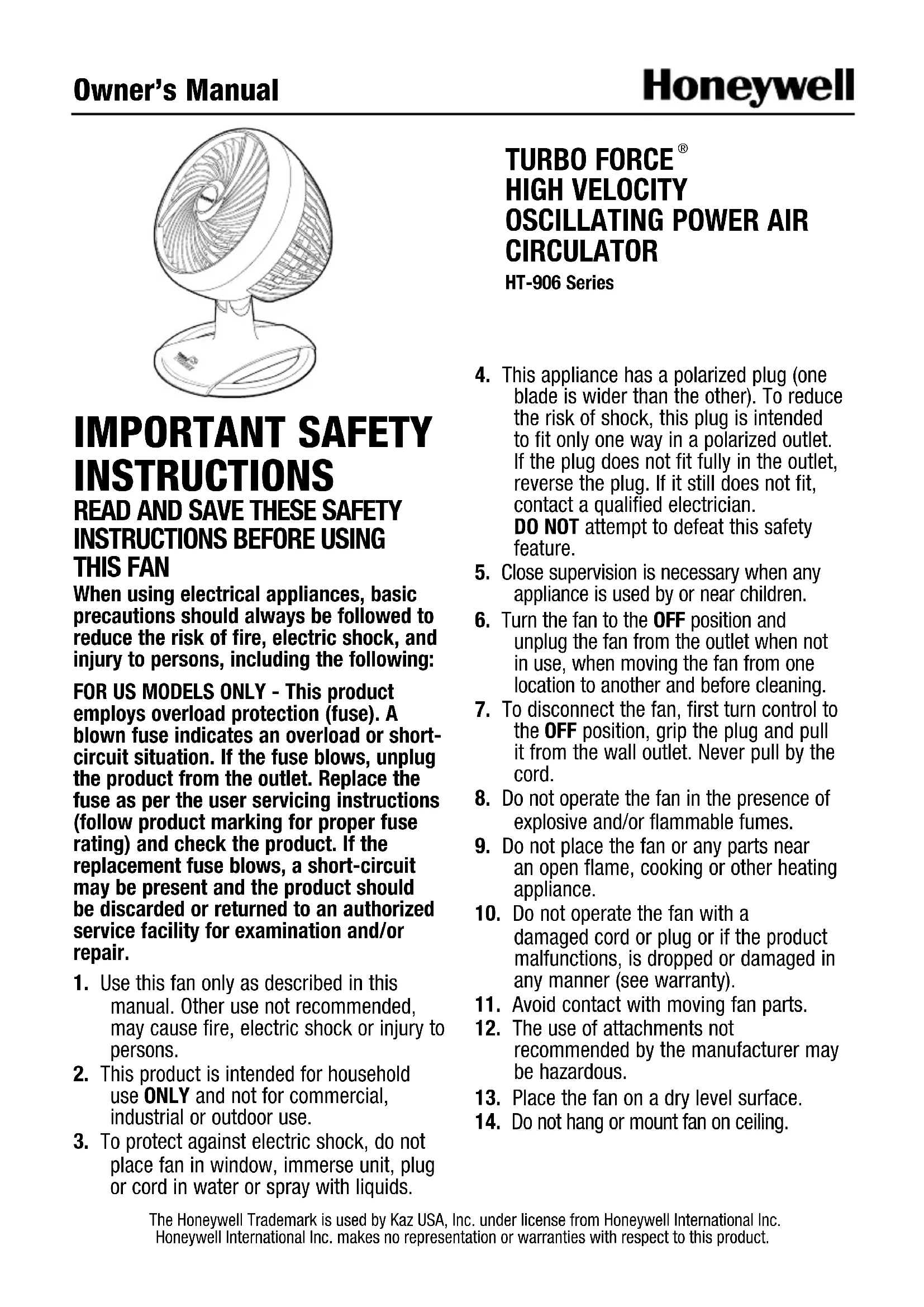 Retrouvez gratuitement la notice de l'appareil Turbo Force HT-906 HONEYWELL au format PDF.