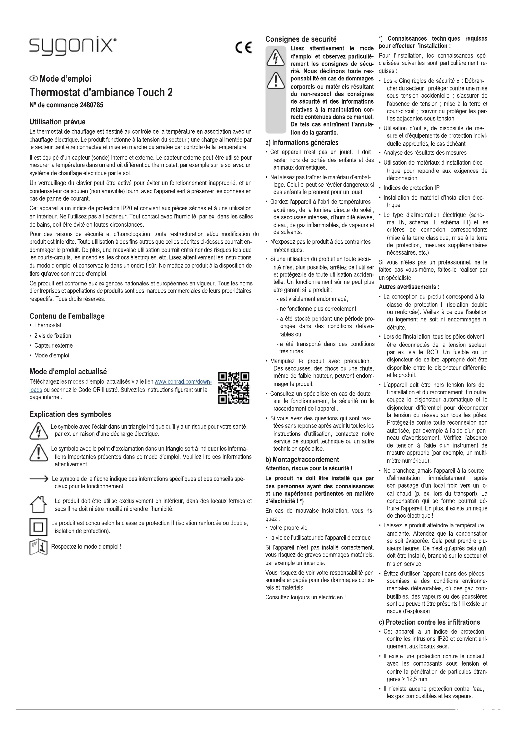 Touch 2 - Thermostat Sygonix - Notice d'utilisation et mode d'emploi gratuit