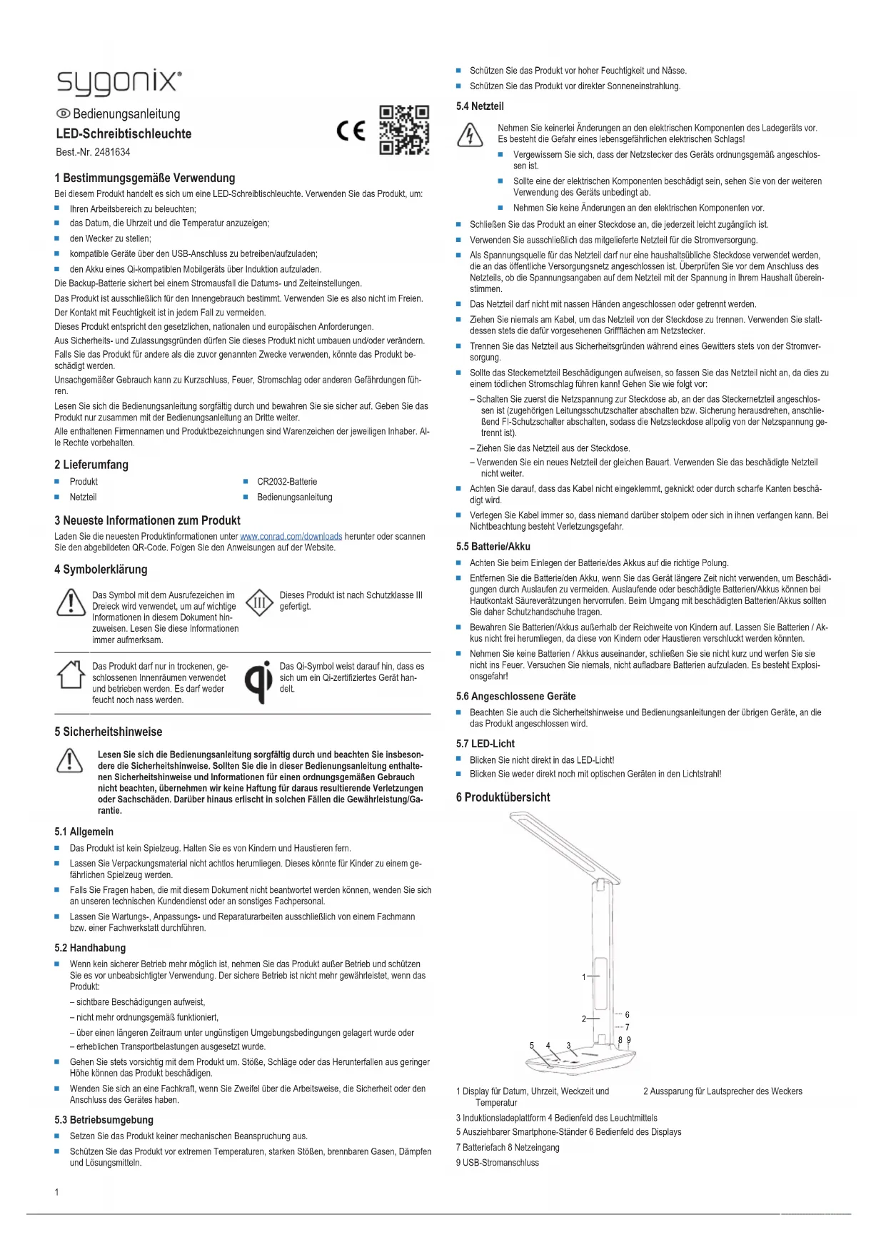 Mode d’emploi 3 Dernières informations sur le produit Téléchargez les dernières informations relatives au produit sur le site www.conrad.com/downloads ou scannez le code QR indiqué. Suivez les instructions figurant sur le site Web. 4 Description des symboles Le symbole avec le point d’exclamation dans un triangle sert à indiquer les infor- mations importantes contenues dans ce document. Veuillez lire ces informations attentivement. Ce produit a été fabriqué selon la classe de protectionIII. Ce produit doit être utilisé uniquement dans des endroits fermés, secs et en in- térieur. Il ne doit pas être humide ni mouillé. Le symbole Qi indique qu’il s’agit d’un appareil certifié Qi 5 Consignes de sécurité Lisez attentivement le mode d’emploi et observez particulièrement les consignes de sécurité. Nous ne saurions être tenus pour responsables des blessures corporelles ou des dommages matériels résultant du non-respect des mises en garde et des indica- tions relatives à une utilisation correcte figurant dans ce mode d'emploi. De tels cas entraînent l’annulation de la garantie.