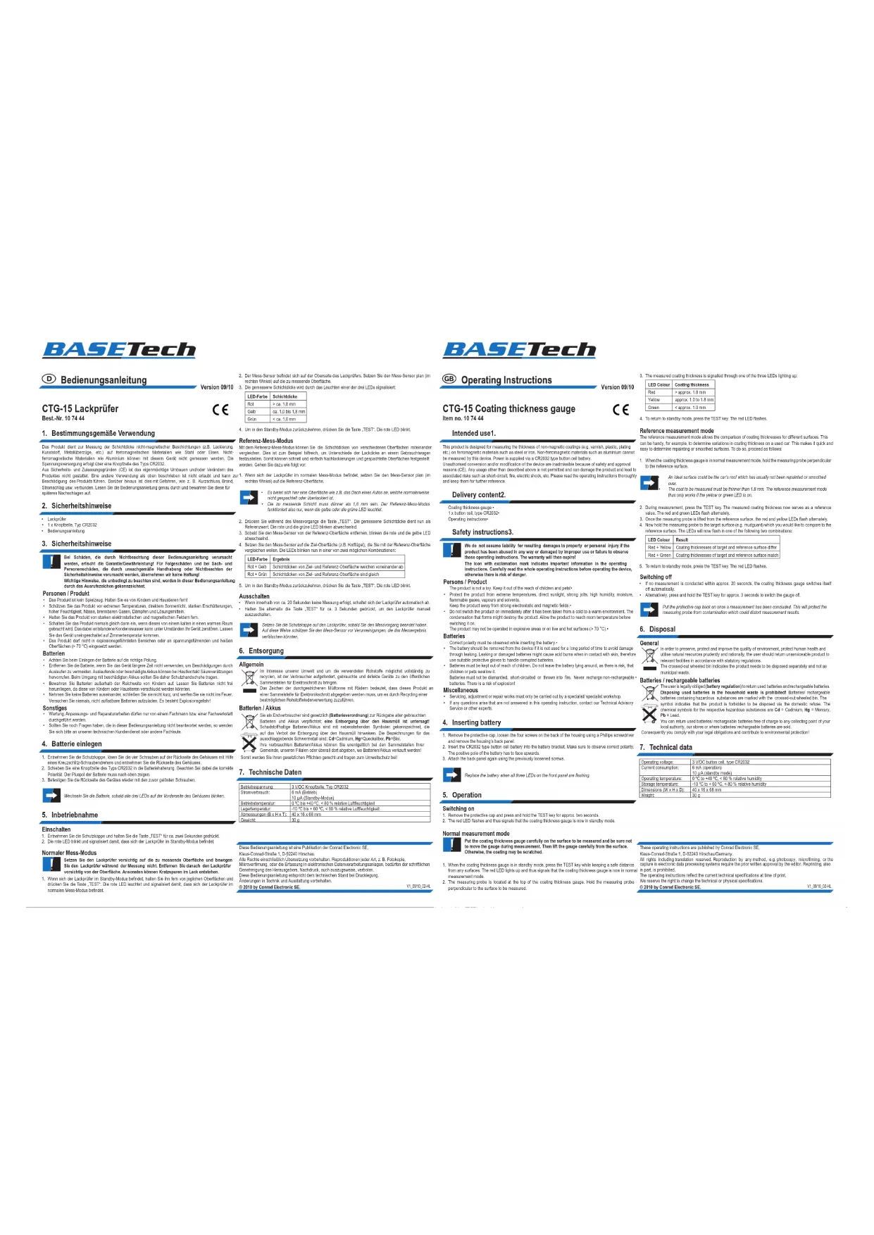 Retrouvez gratuitement la notice de l'appareil CTG-15 BASETECH au format PDF.