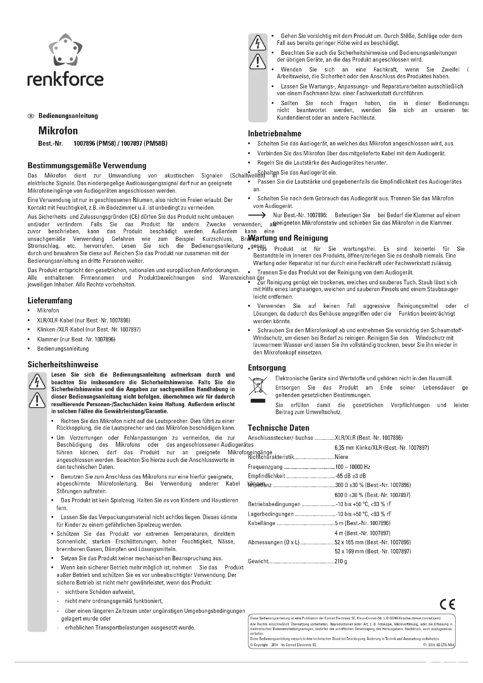 PM58B - Microphone Renkforce - Notice d'utilisation et mode d'emploi gratuit