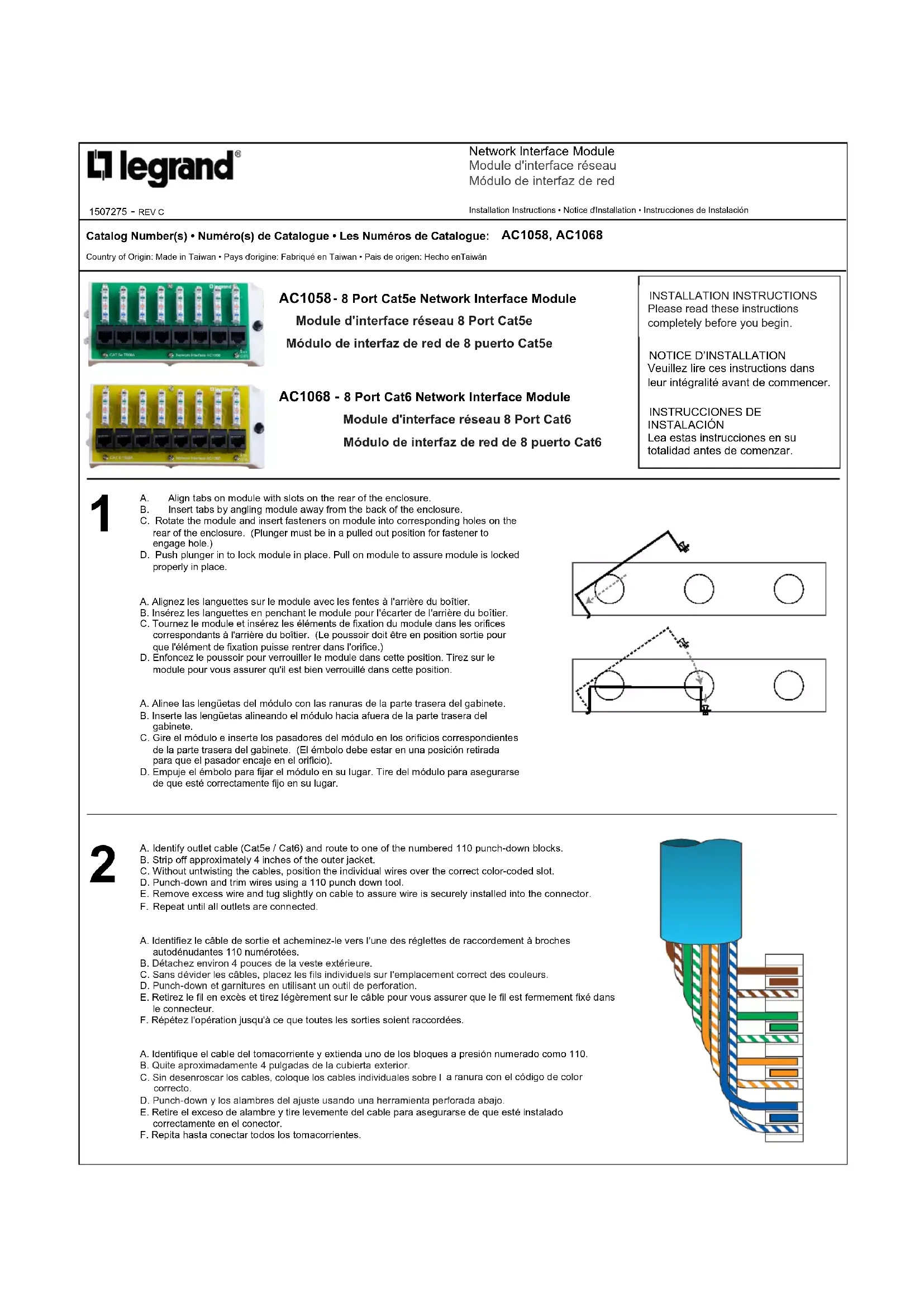 8 Port Cat5e Network Interface Module Module d'interface réseau 8 Port Cat5e Módulo de interfaz de red de 8 puerto Cat5e